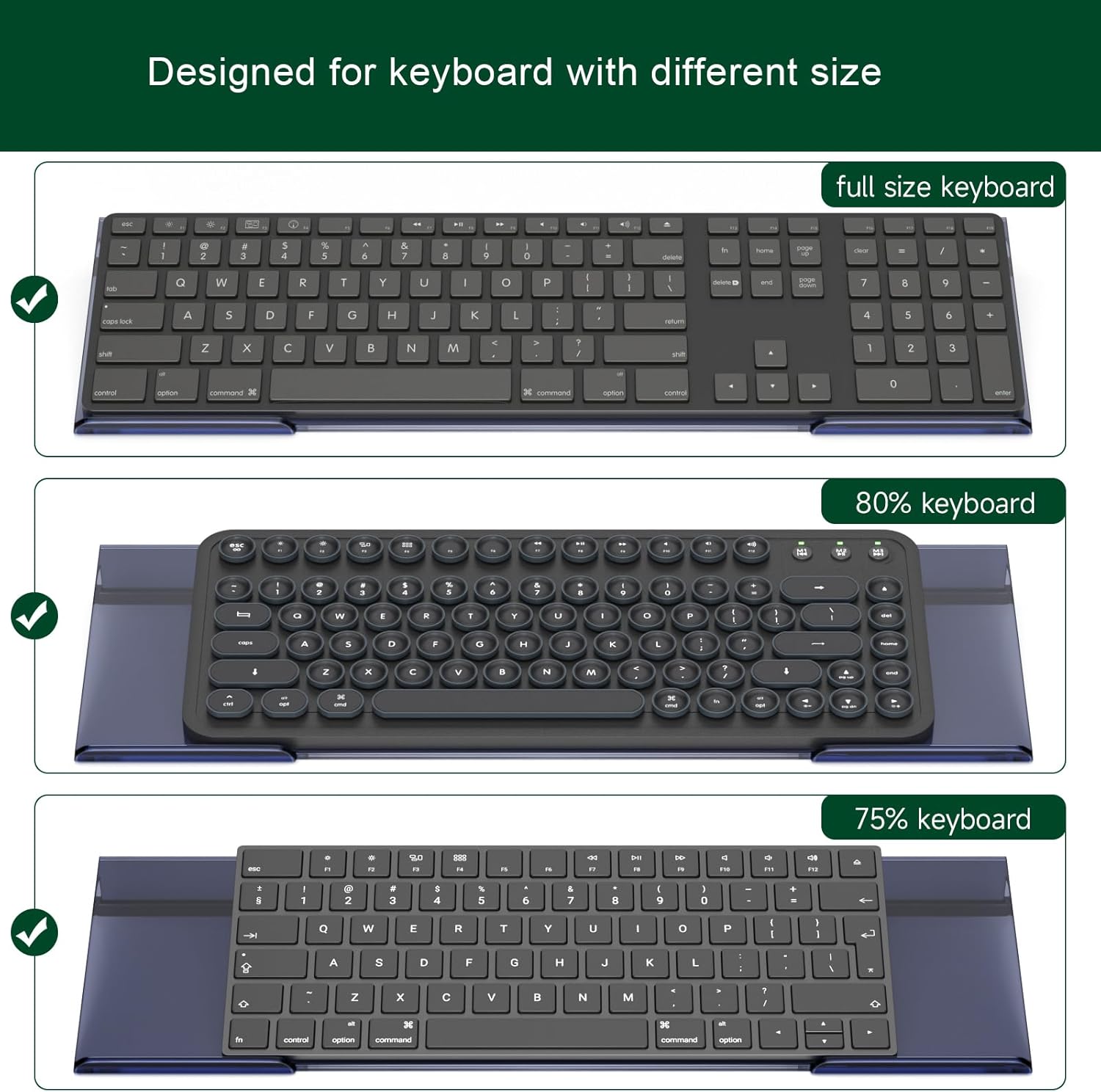 Easy to Use: no assembly, clean and minimal, acrylic keyboard stand is compatible with magic keyboard, thin keyboard, mini keyboard, full-sized keyboard. Computer keyboard holder enhances your typing experience with stability while prioritizing comfort and ergonomics, makes a great addition to office supplies. Discover the fun and surprise your wrists with this ergonomic keyboard stand.