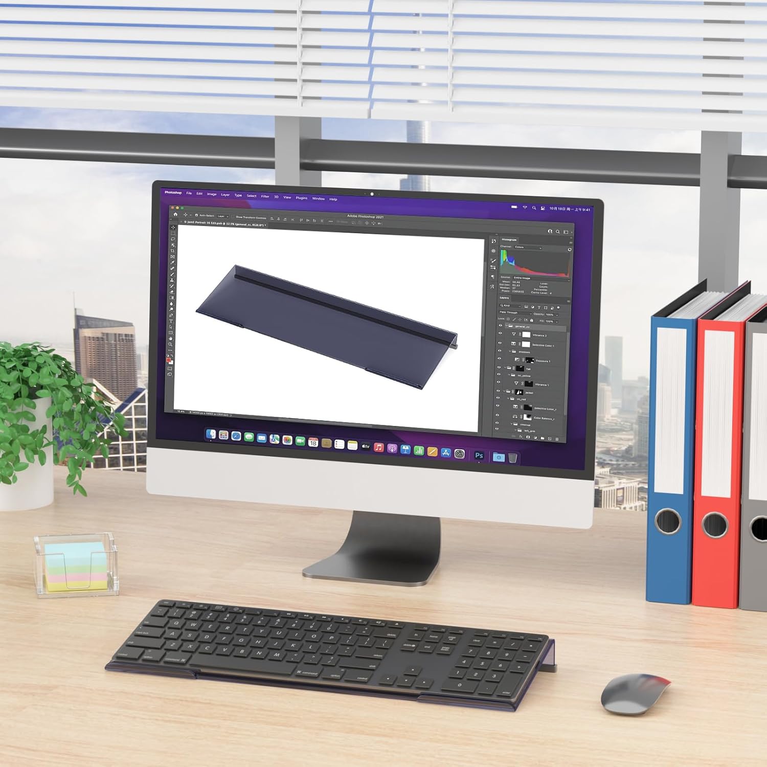 Low Front Lips: computer keyboard stand enhances your setup both aesthetically and functionally without hindering your typing, sleek design of keyboard riser also complements your workspace nicely by providing excellent support during long typing sessions, with the keyboard raised, this one-piece art is an elegant office desk organization solution to clean your desk much easier. Keyboard stand for desk is a nice addition to your office desk accessories.