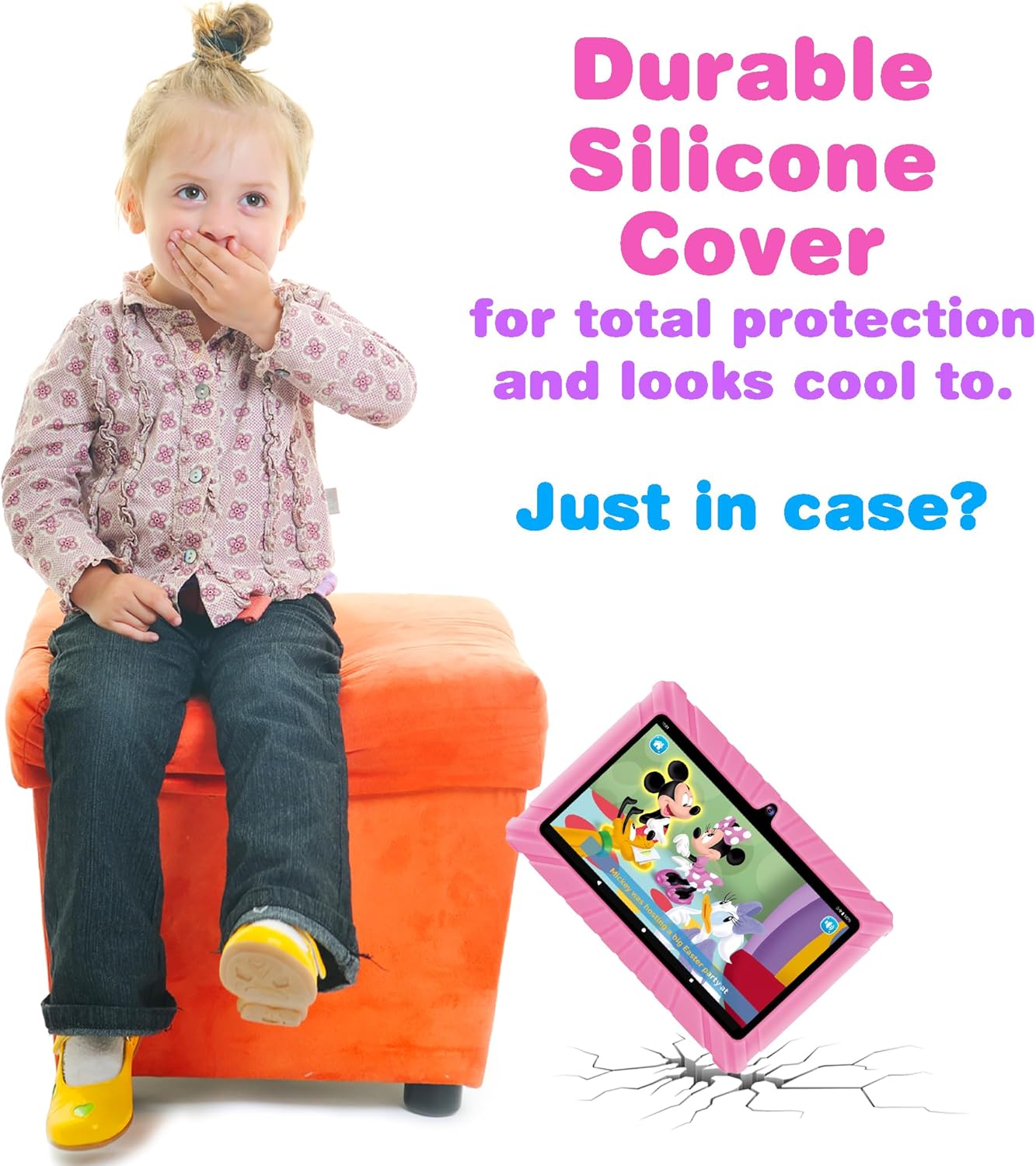INCLUDES PROTECTIVE TABLET CASE AND SCREEN PROTECTOR: The included kids tablet case protects against minor bumps, scratches or drops. Made of high quality soft rubber silicone material, the tablet case is safe and comfortable for any child to hold. Pre-installed 3-layer film LCD screen protection protects your tablet screen from minor accidental damage, light scratches or marks.