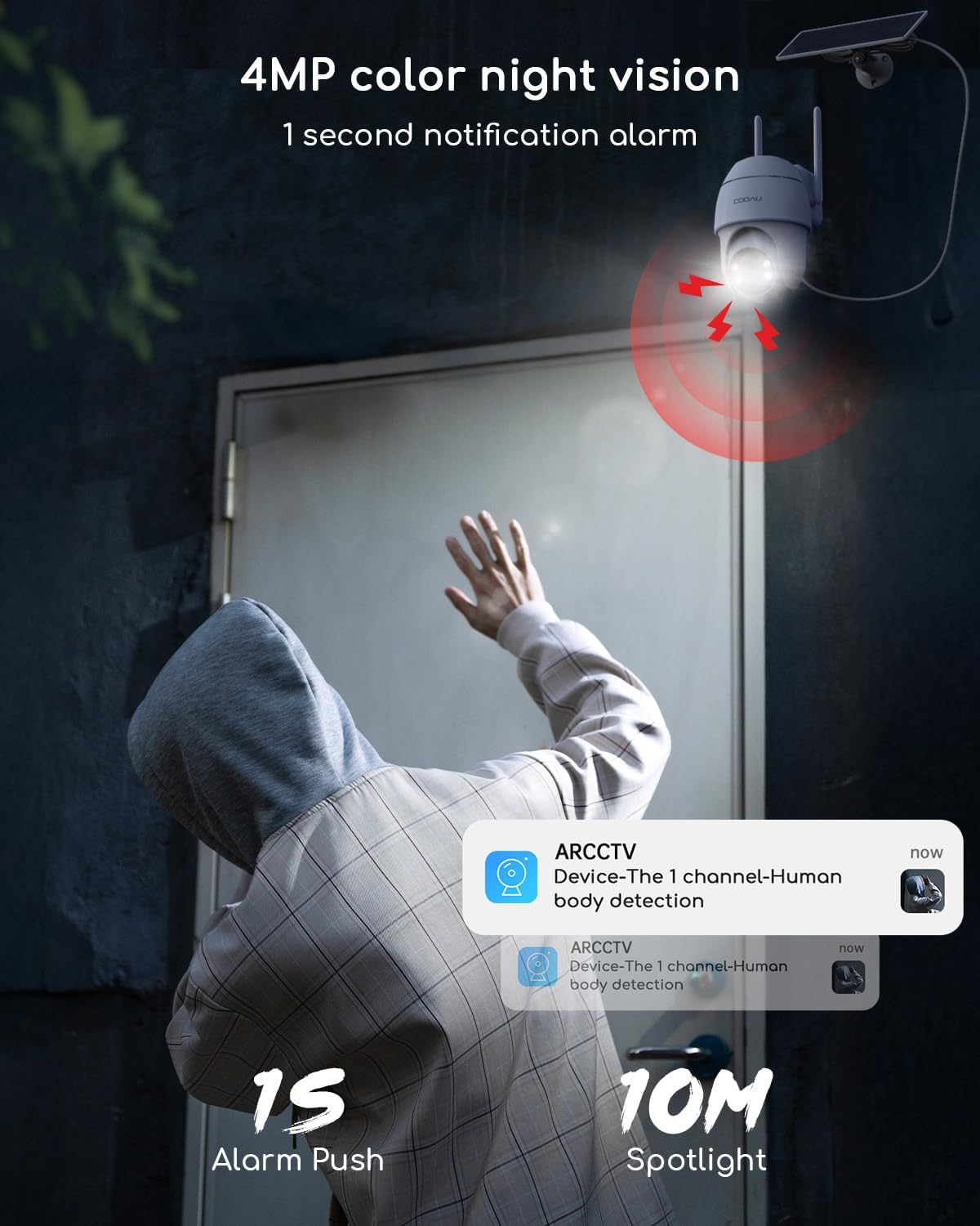 COOAU security cameras come with a 64GB memory card, so you can securely store recordings locally with no subscription fees or hidden costs.