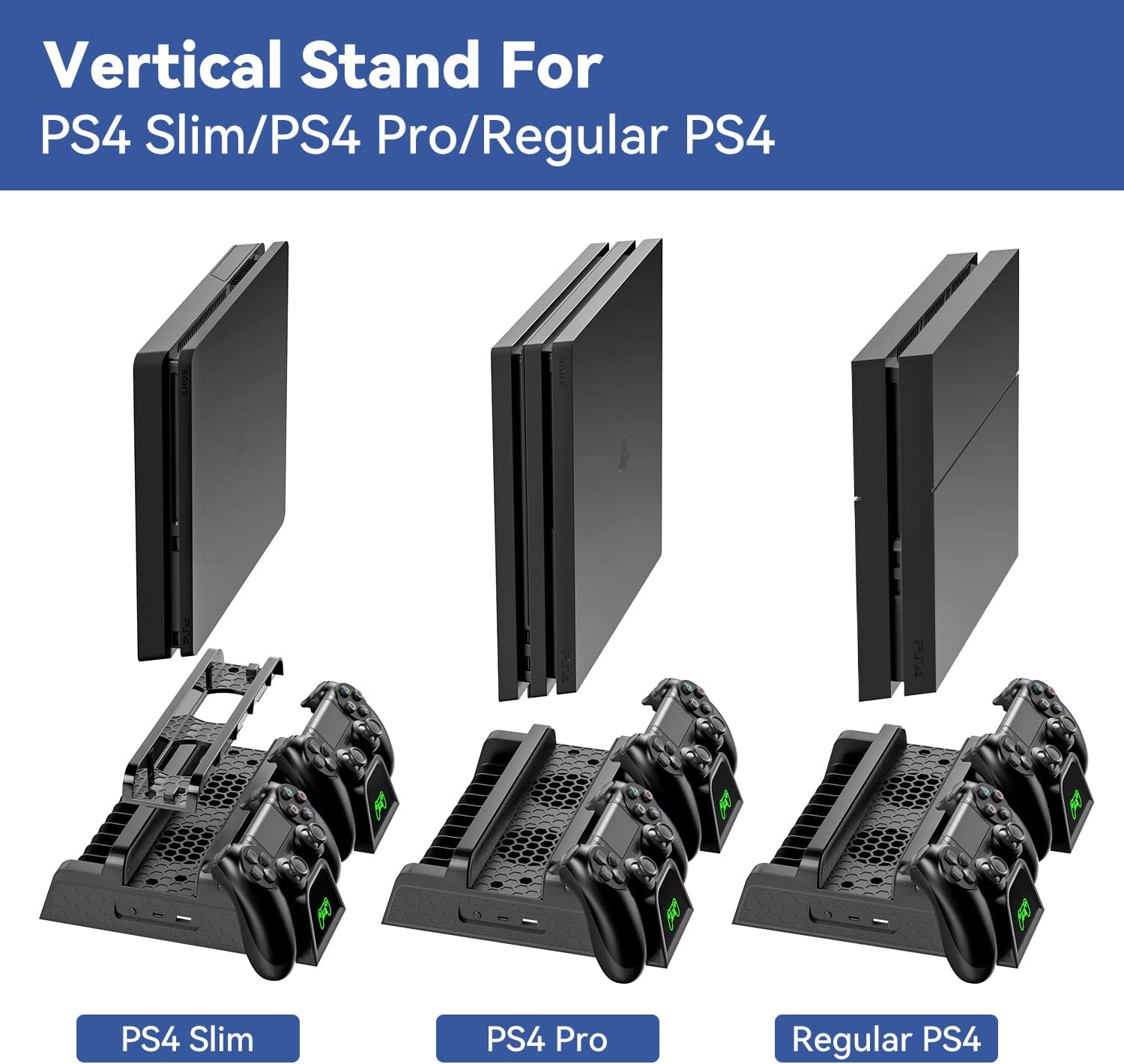 Multifunctional Design for PS4/PS4 Slim/Regular PS4 Pro Console: Cool and store your Playstation 4 console, with dual controller charging station and 12 game slots.