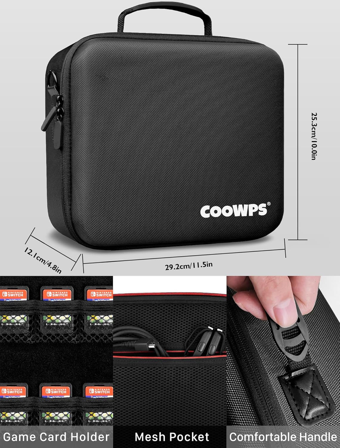WHAT'S INCLUDED: 1 * COOWPS Carrying Case for Switch (The console, pro controllers and other accessories in the images are for demonstration purposes only and are not included.) We focus on providing a better storage experience for the essence of your favorite Switch console.