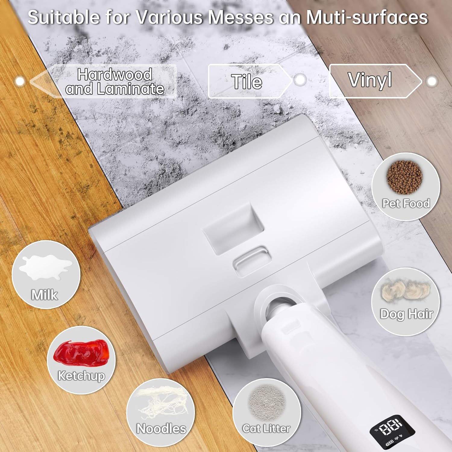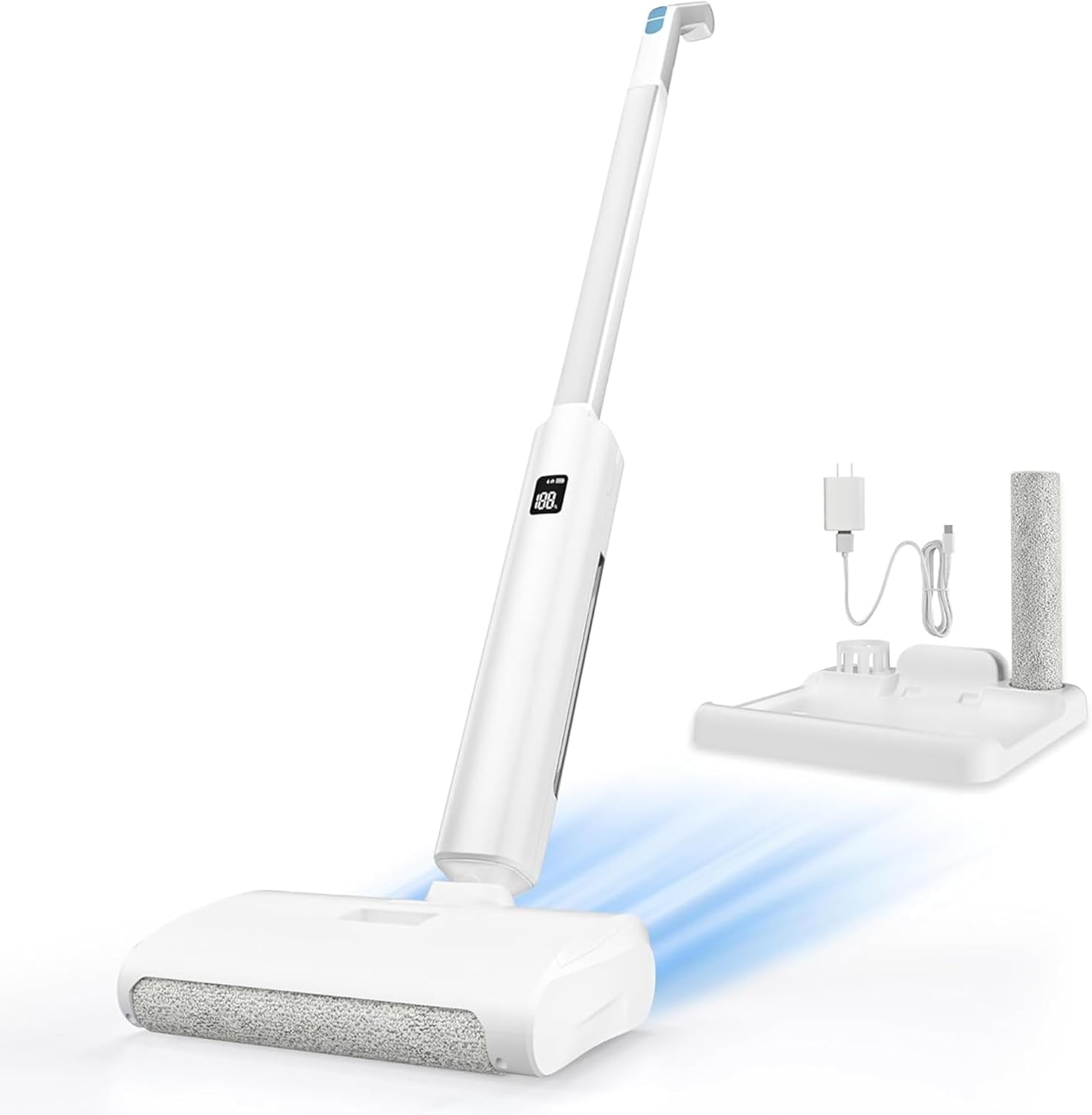 Powerful Cordless Electric Mop: P8 cordless electric mop features high cleaning efficiency of 1000 r/min, ensuring deep cleaning of floors, ceramic tiles, marble floors, wooden boards and other surfaces. With 99.99% cleaning efficiency, it meets your daily floor cleaning needs effortlessly.