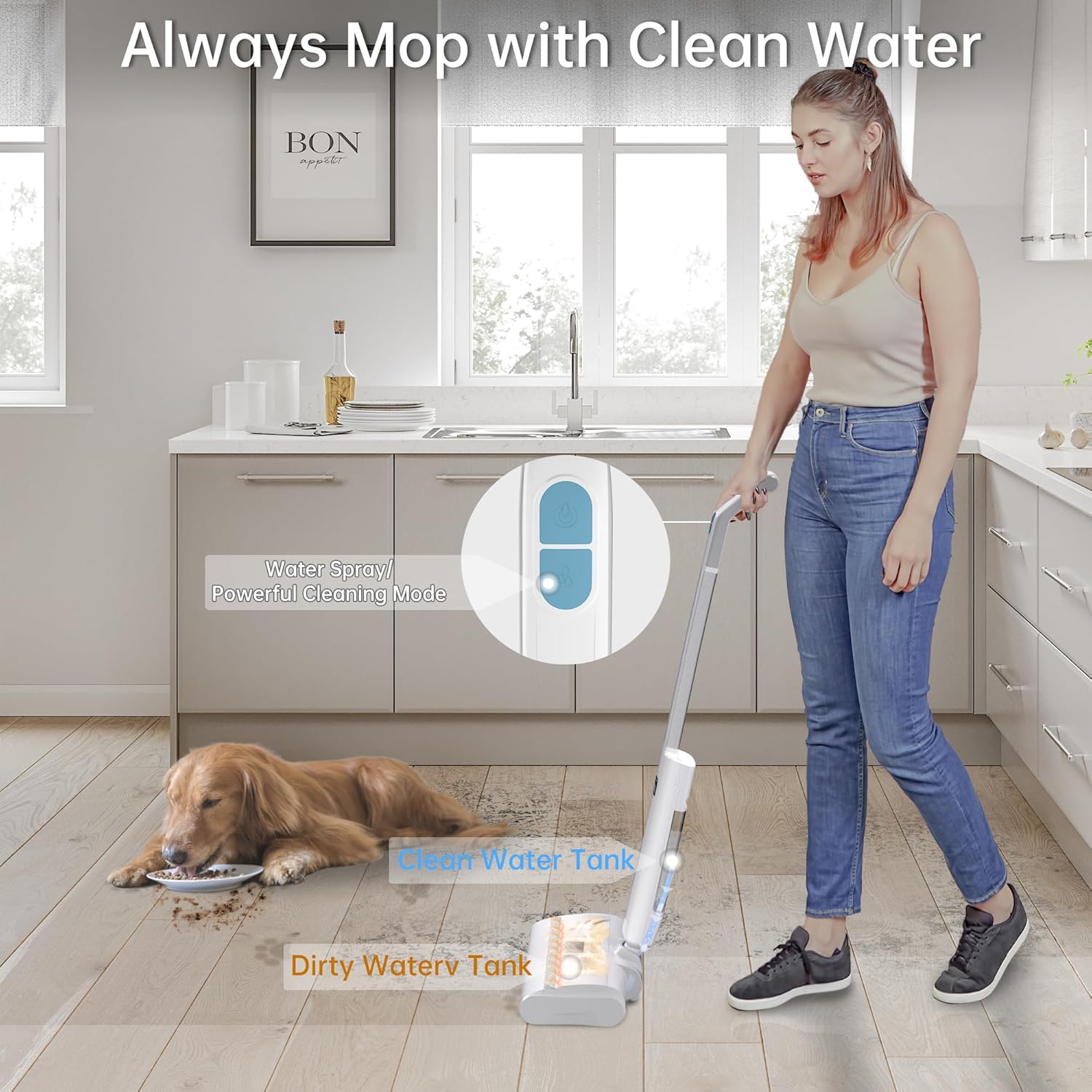 Lightweight, user-friendly design: Weighing just 2.65kg, the Electric Mop is easy to operate with one hand and can be maneuvered effortlessly on stairs. Its user-friendly design makes it suitable for users of all ages, especially parents and seniors.