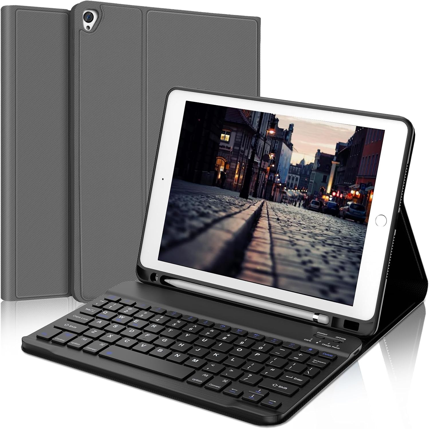 Package Included: 1 x iPad 10.2 inch Keyboard Case (iPad and Apple Pencil are not included); 1 x Type-C Fast Charging Cable; 1 x Product Manual. The warranty period is 12 months and 30 days no reason to return or exchange, if you encounter problems such as battery not charging, keys not working, bluetooth not working, etc, don't worry, contact us, we will reply and solve the problem within 12 hours.