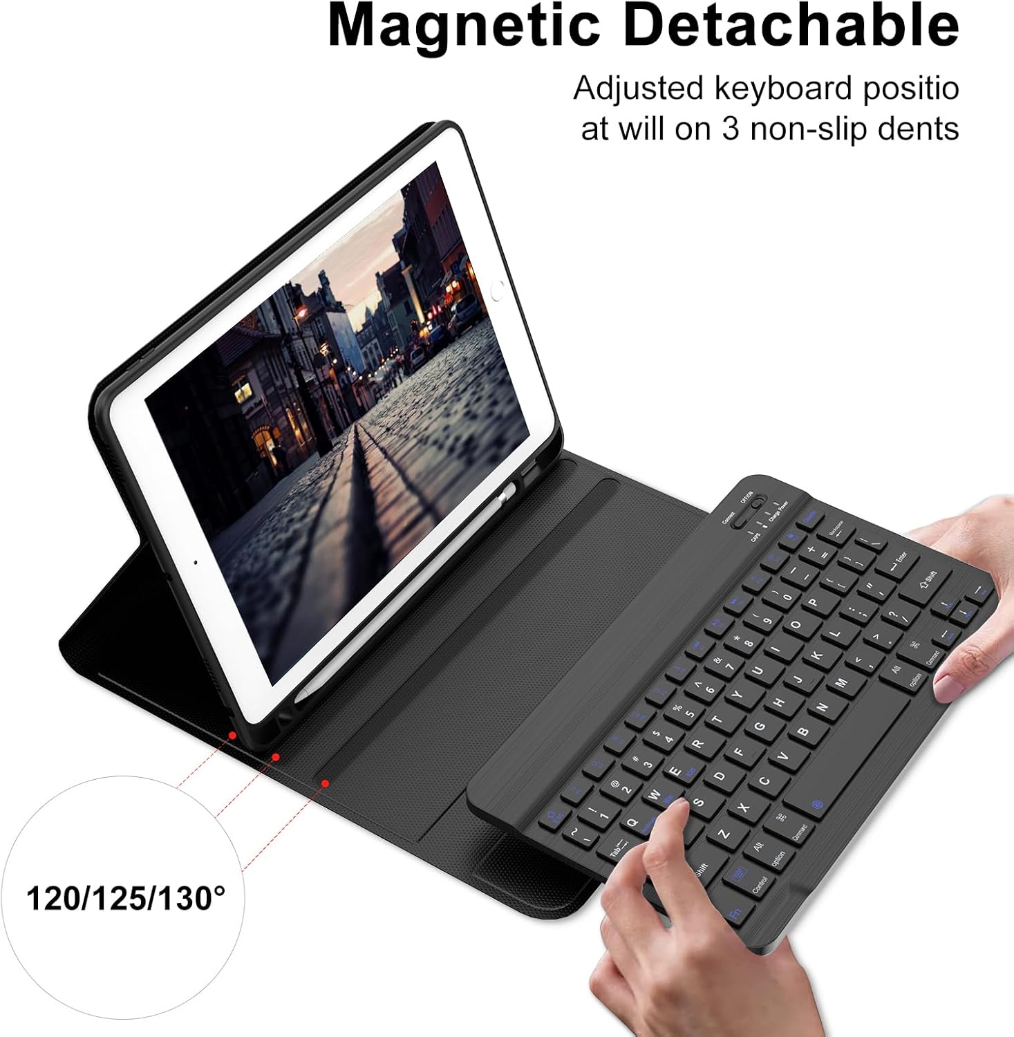 💫Detachable Wireless Keyboard: Comes with a magnetic, removable, slim (6.5mm) and lightweight Bluetooth keyboard with a range of 10m. If you take our iPad keyboard case outdoors for working, typing, painting or gaming, you will definitely find it as your new favorite tool. Folio iPad Keyboard Case provides maximum protection and productivity for your iPad with minimal bulk.