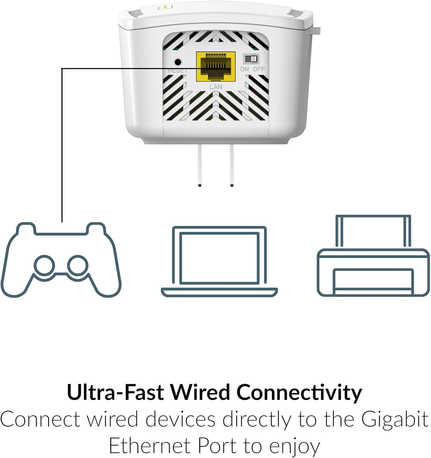 [Gigabit Ethernet Port] Connect wired devices such as gaming consoles and smart TVs for better Wi-Fi connectivity. You can also switch the extender to access point mode and use Ethernet for backhaul.