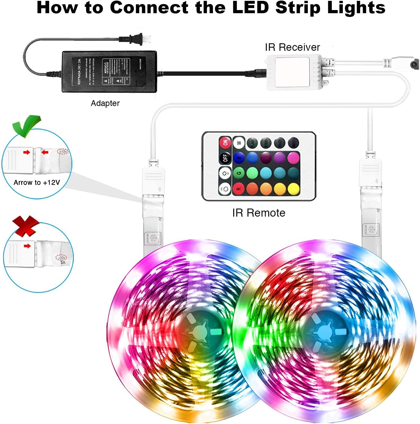 100FT EXTRA LONG LIGHTING — These RGB LED strip lights are long enough to decorate and colorize larger areas giving you more coverage and more design options. Suitable for bedrooms, kitchens, stairs, dining rooms, ceilings, and large party.