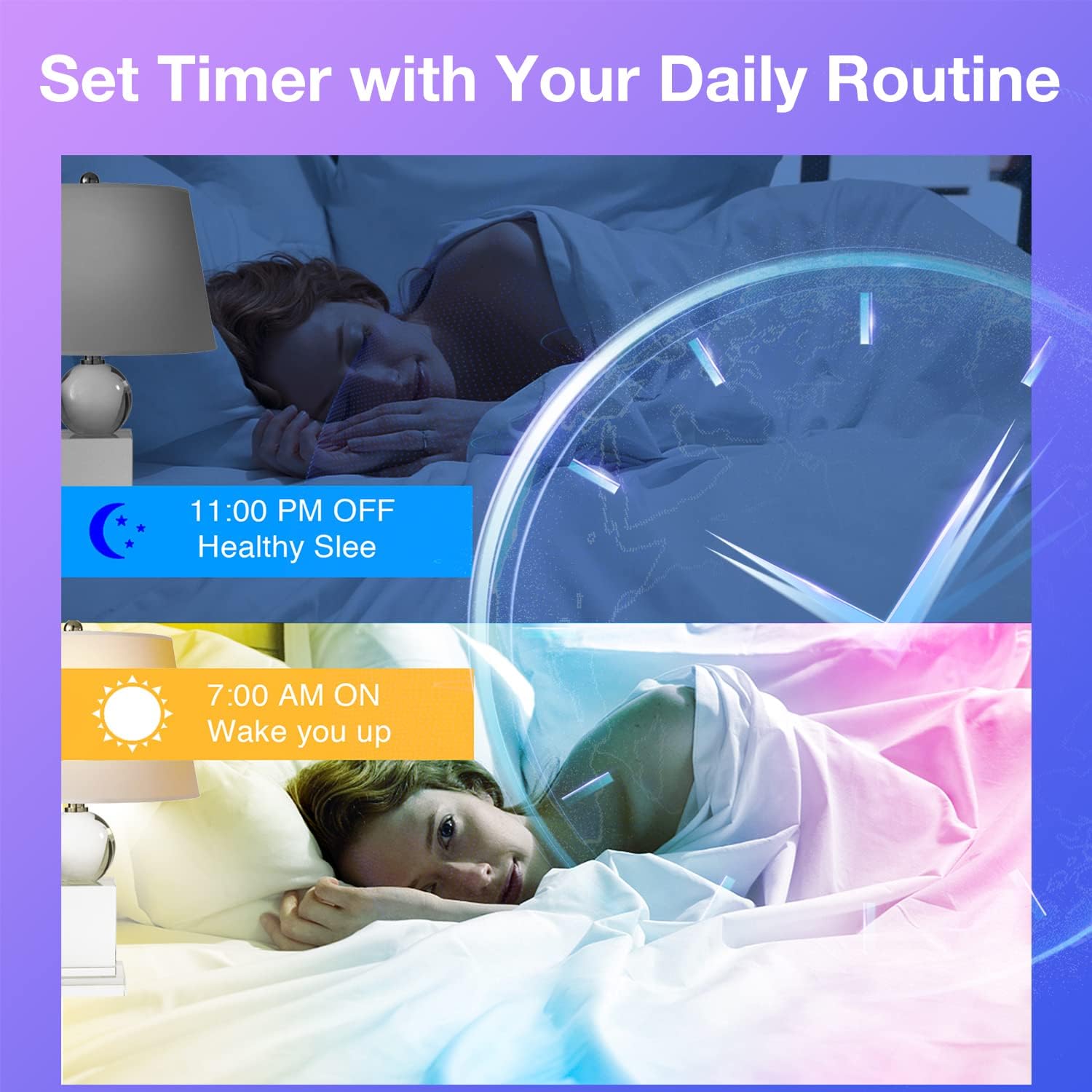 Timer and Scheduling: Making smart light bulbs part of your daily routine is now easier than ever. You can set as many different timers as you like, even timers that are something like: dusk + 4 minutes, sunrise – 15 minutes. If you're going on vacation, you can set up an elaborate series of lights on/off, different for each day of the week.