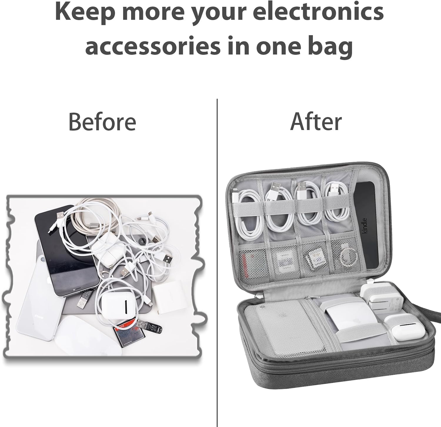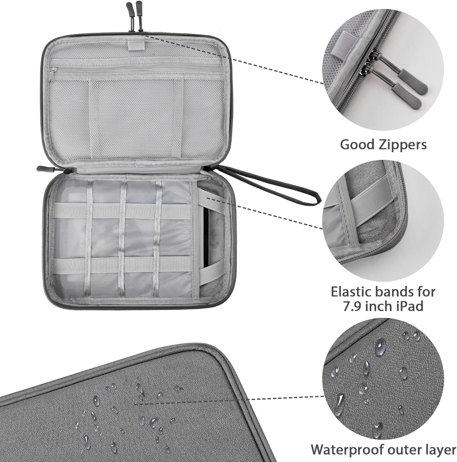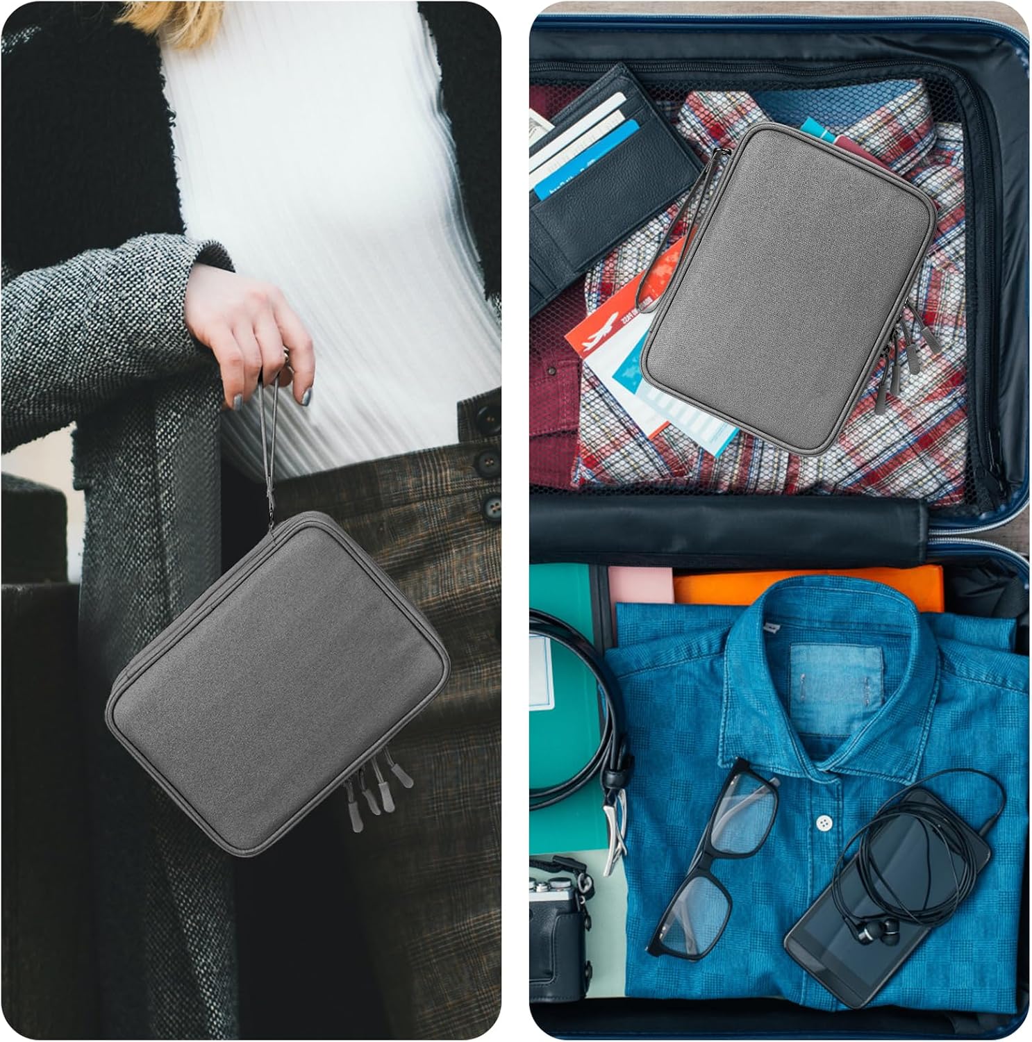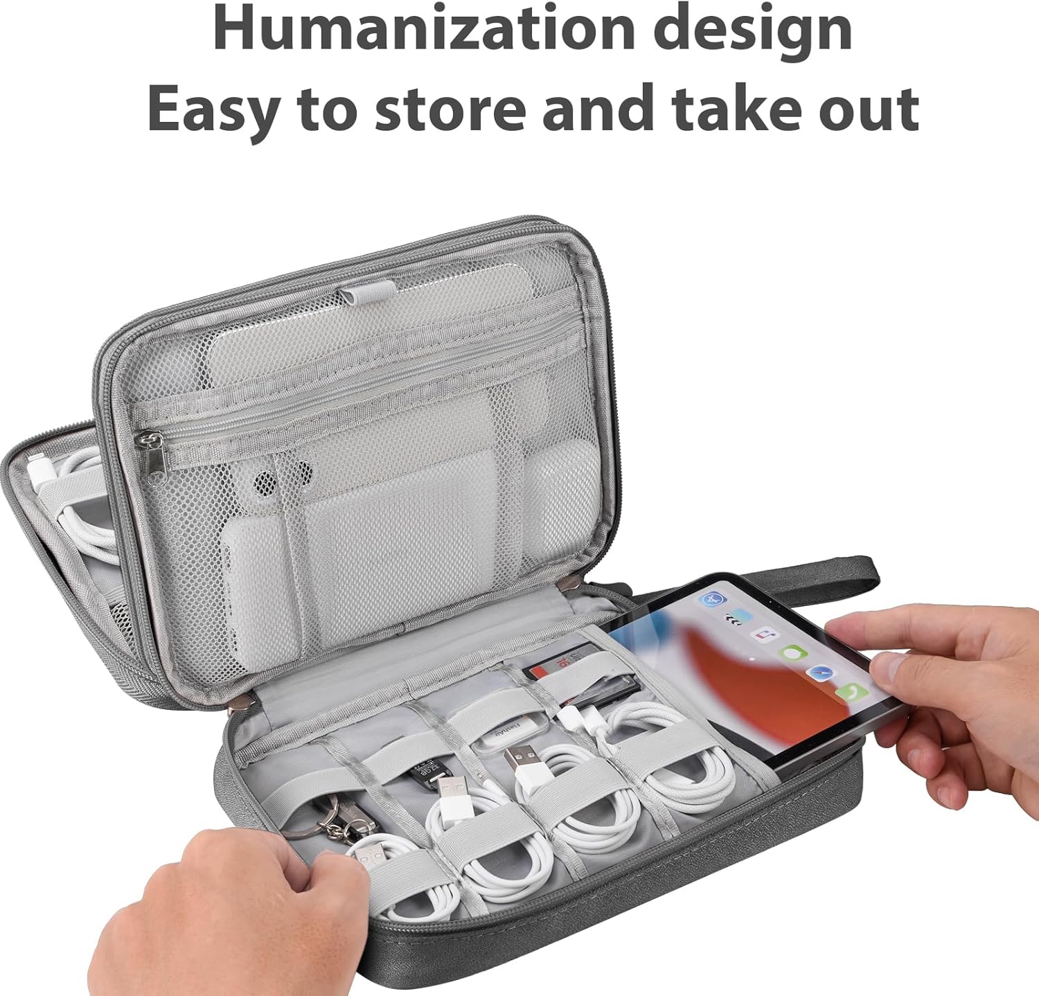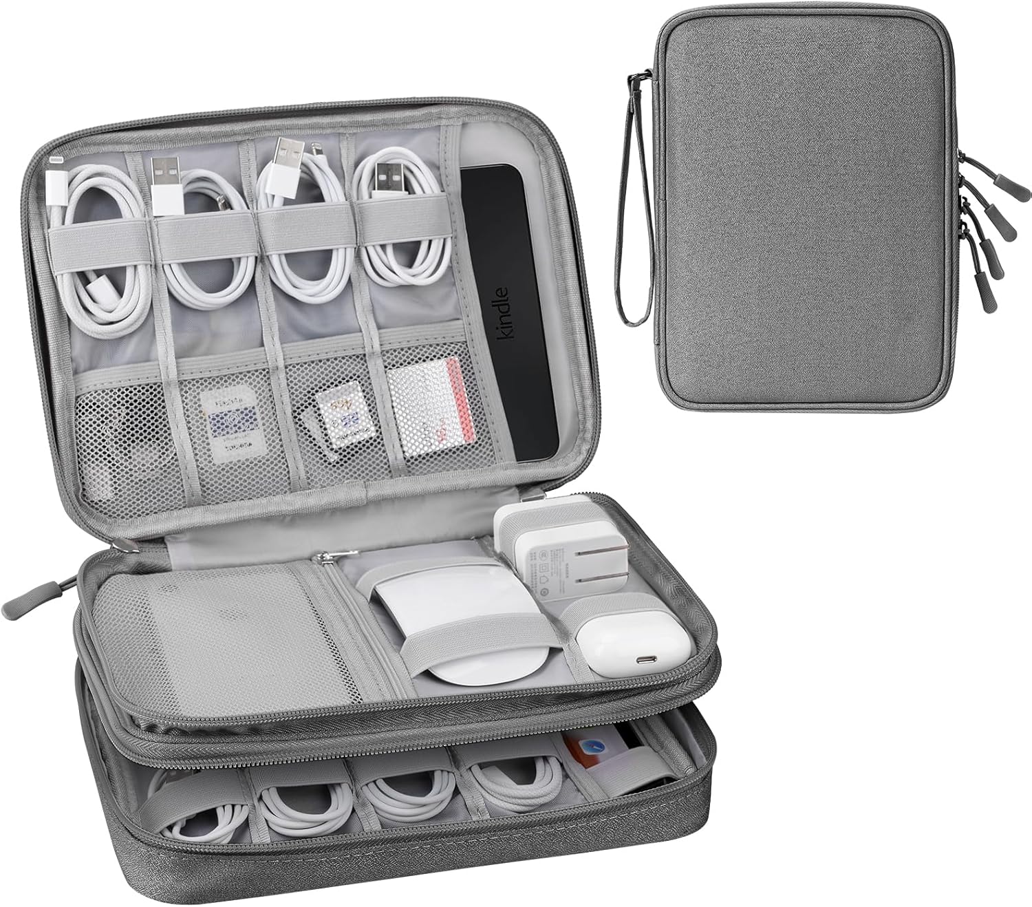 Ddgro Travel Organizer Bag is very good for traveling and working in the office. This case of accessories can keep their cables, loaders, etc. organized etc. This bag bag with many storage mesh pockets designed to store certificates, passports, driver's license, electronic devices (such as iPad Mini, Kindle, Airpod, Bank, external hard drive, SD memory card, iPhone cables, iPad load, Apple. This organizer is light. Four soft zippers. It is compact, resistant and durable. It is easy to put it in your backpack or suitcase. You will like your daily life or trips.