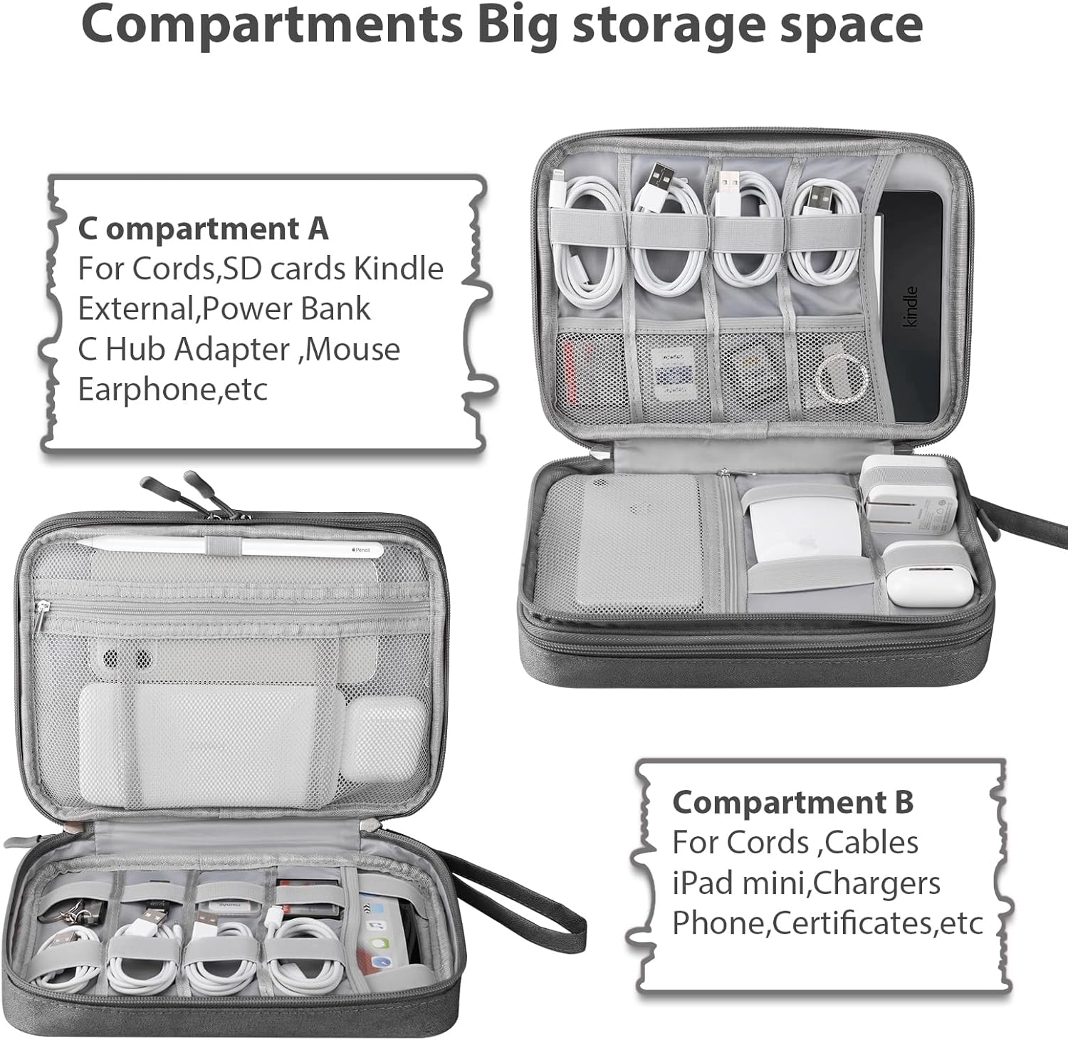 2 Design of Compartments: It comes with 2 compartments with pockets of different sizes, for electronic accessories, iPad Mini