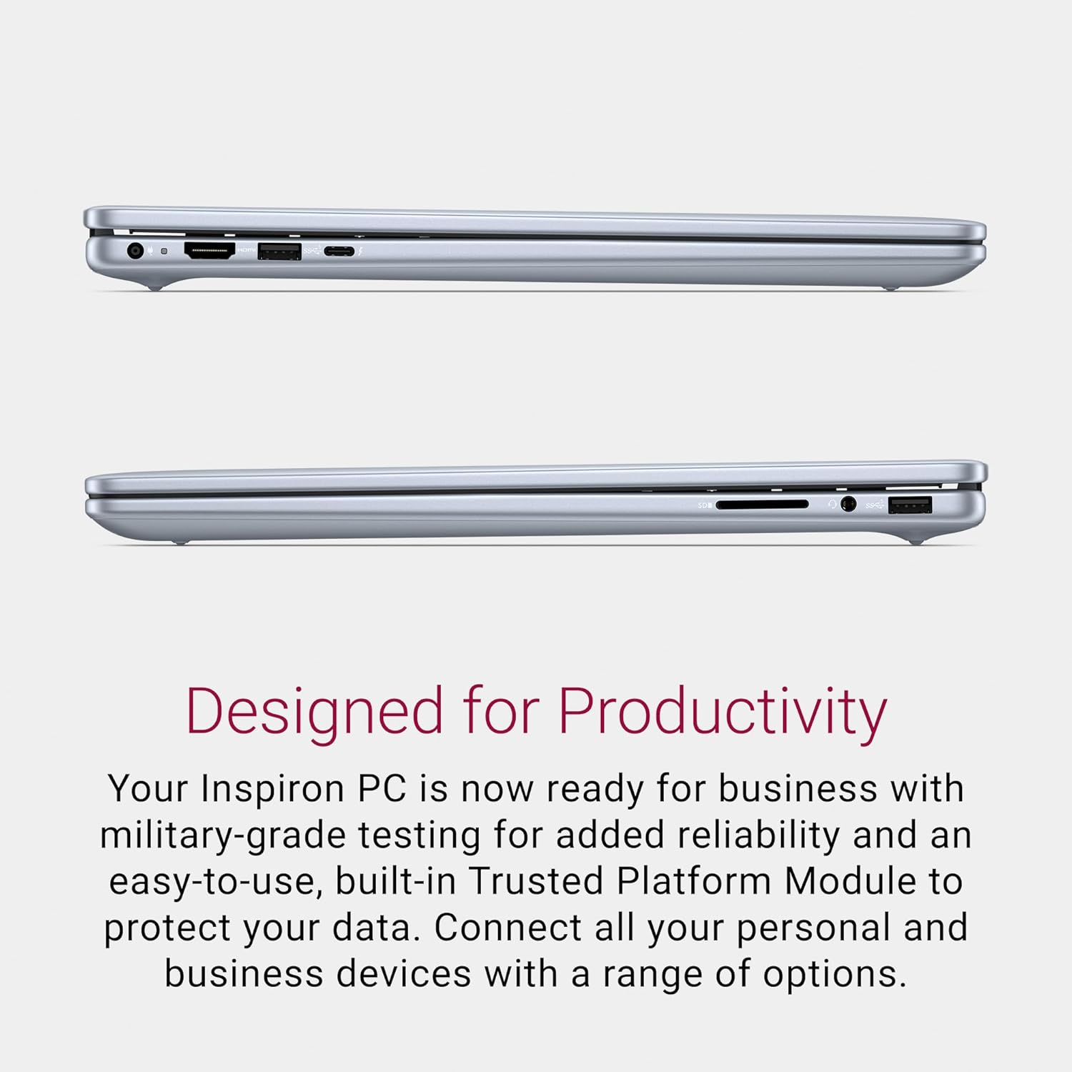 Designed for productivity: Your Inspiron PC is now ready for business with military-grade testing for reliability and an easy-to-use, integrated Trusted Platform module to protect your data. Connect all your personal and business devices with a variety of options.