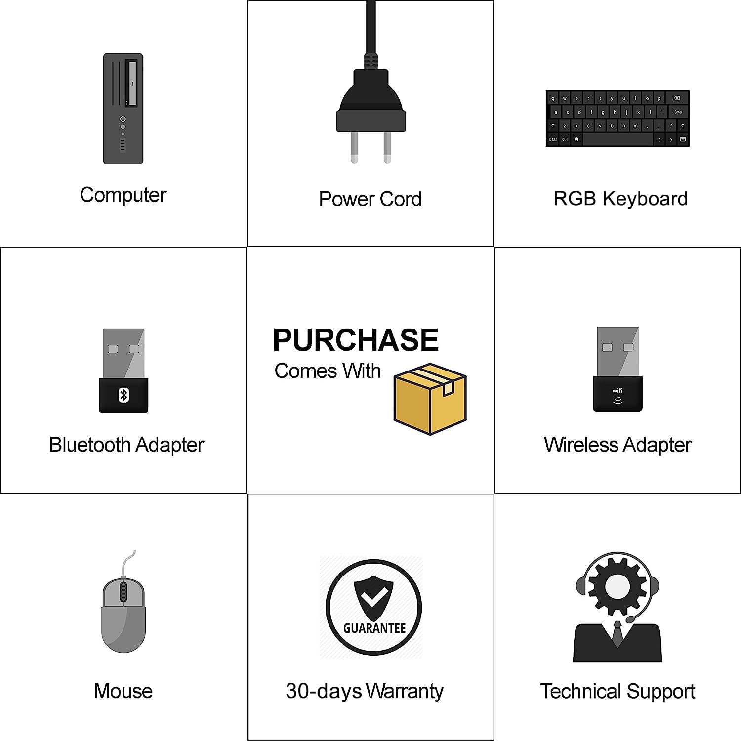 Computer; Power cable; RGB keyboard; Mouse
