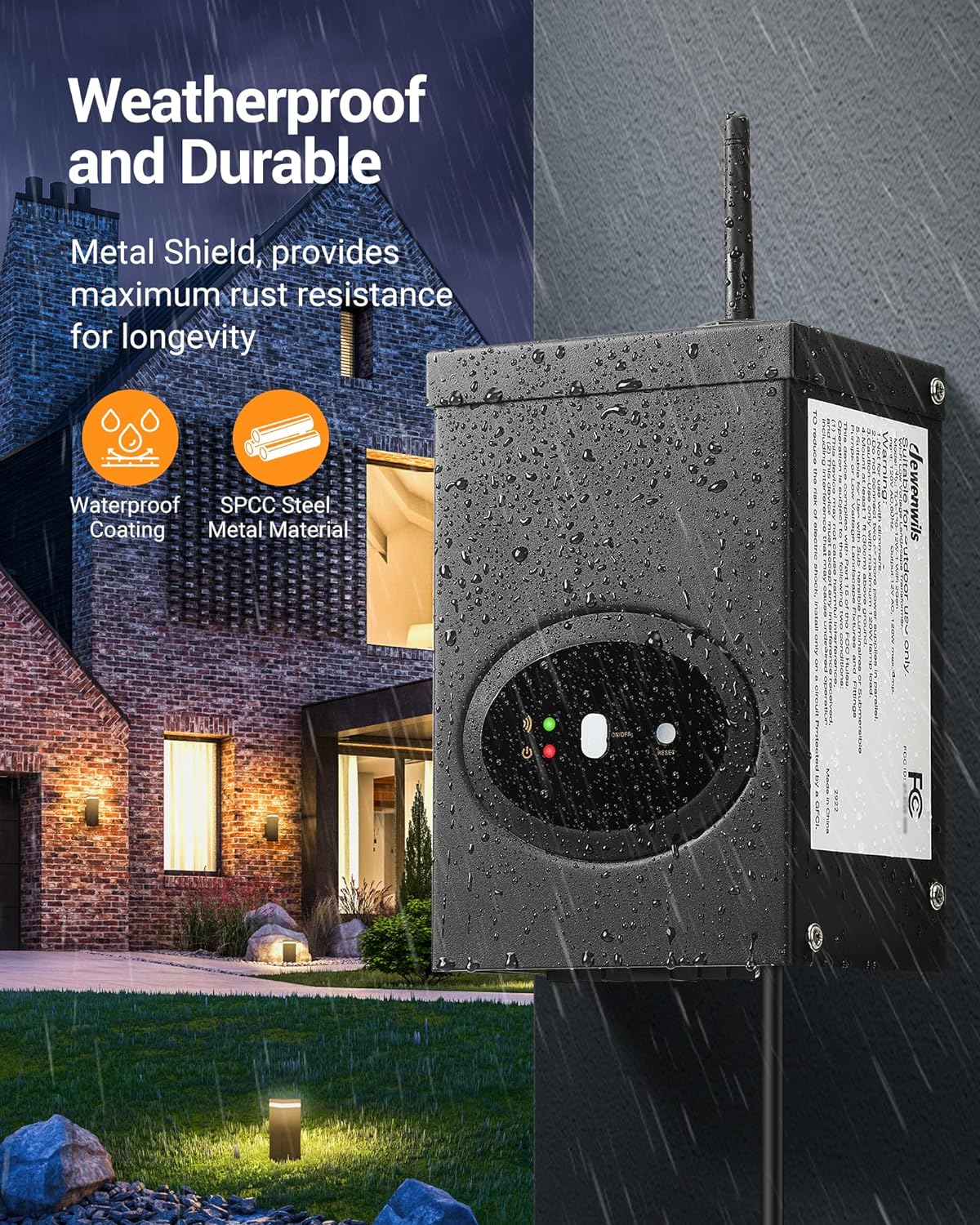 [Safe & Weatherproof] Equipped with overload protection, this Alexa-enabled low voltage transformer will automatically disconnect when the current exceeds the preset threshold; high-performance metal materials provide additional protection, shielding the transformer from rain, snow, dust and abrasion.