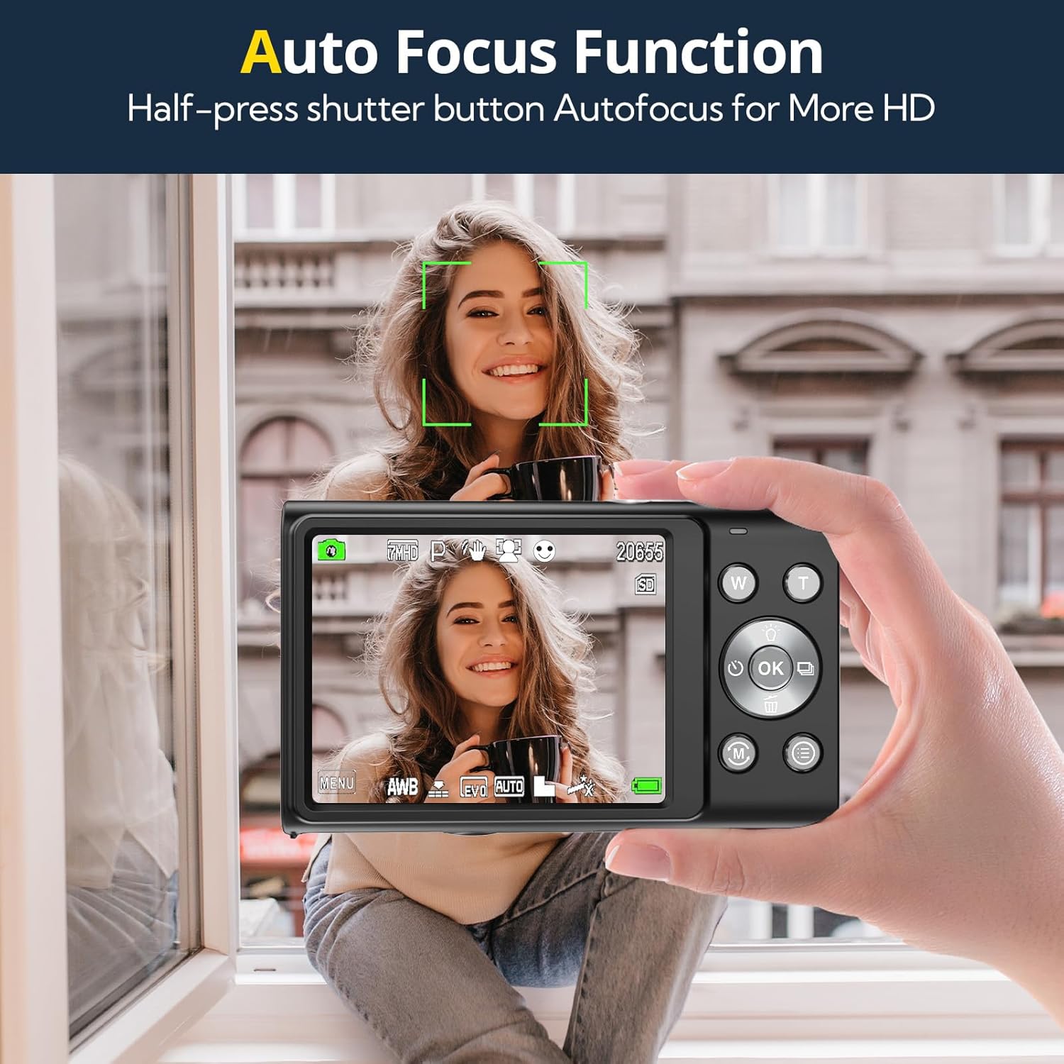 【Auto Focus Function】Say goodbye to blurry photos! The auto focus function ensures that your subjects are sharp and in focus, whether you're capturing fast-moving action or delicate close-ups. Enjoy the ease and precision of auto focus.