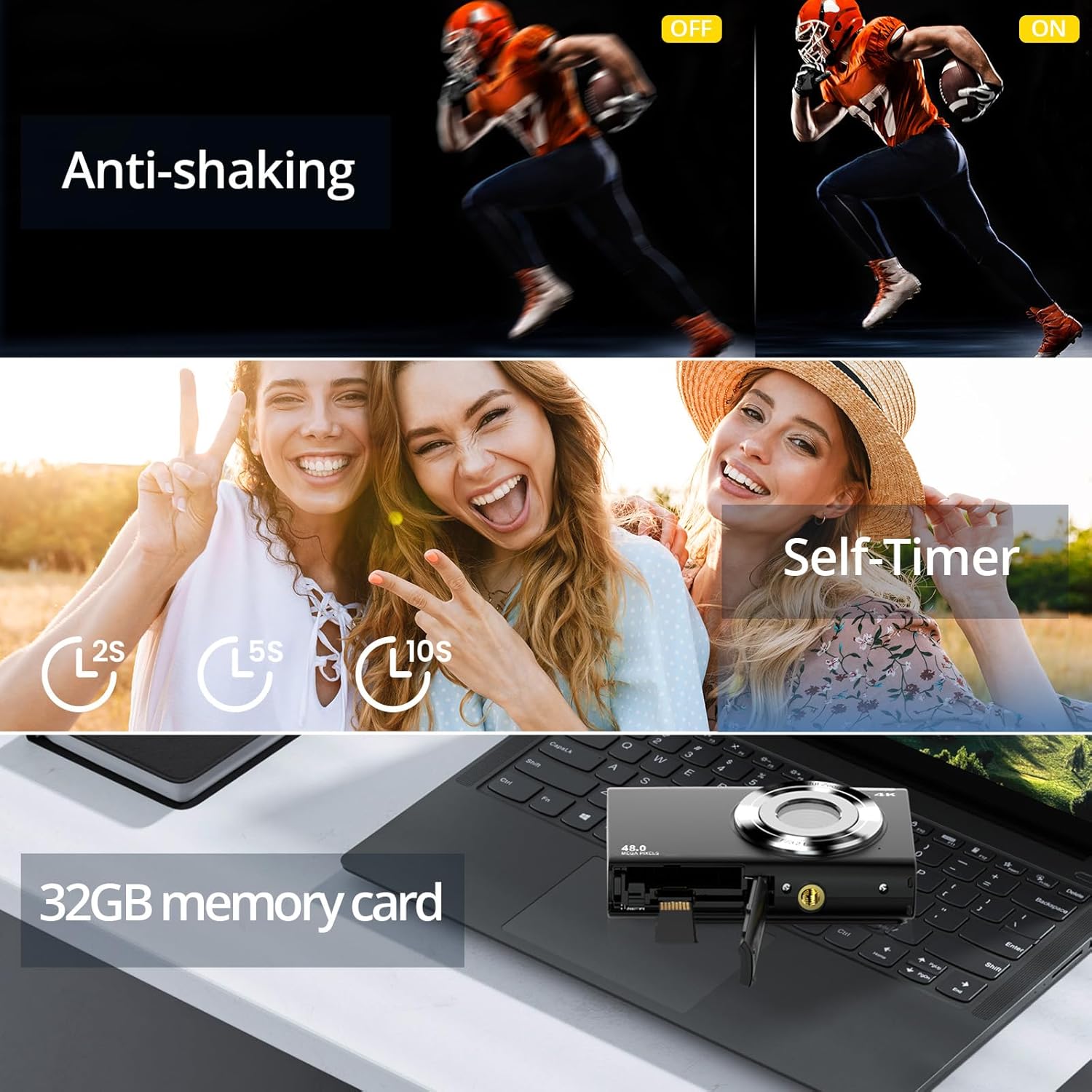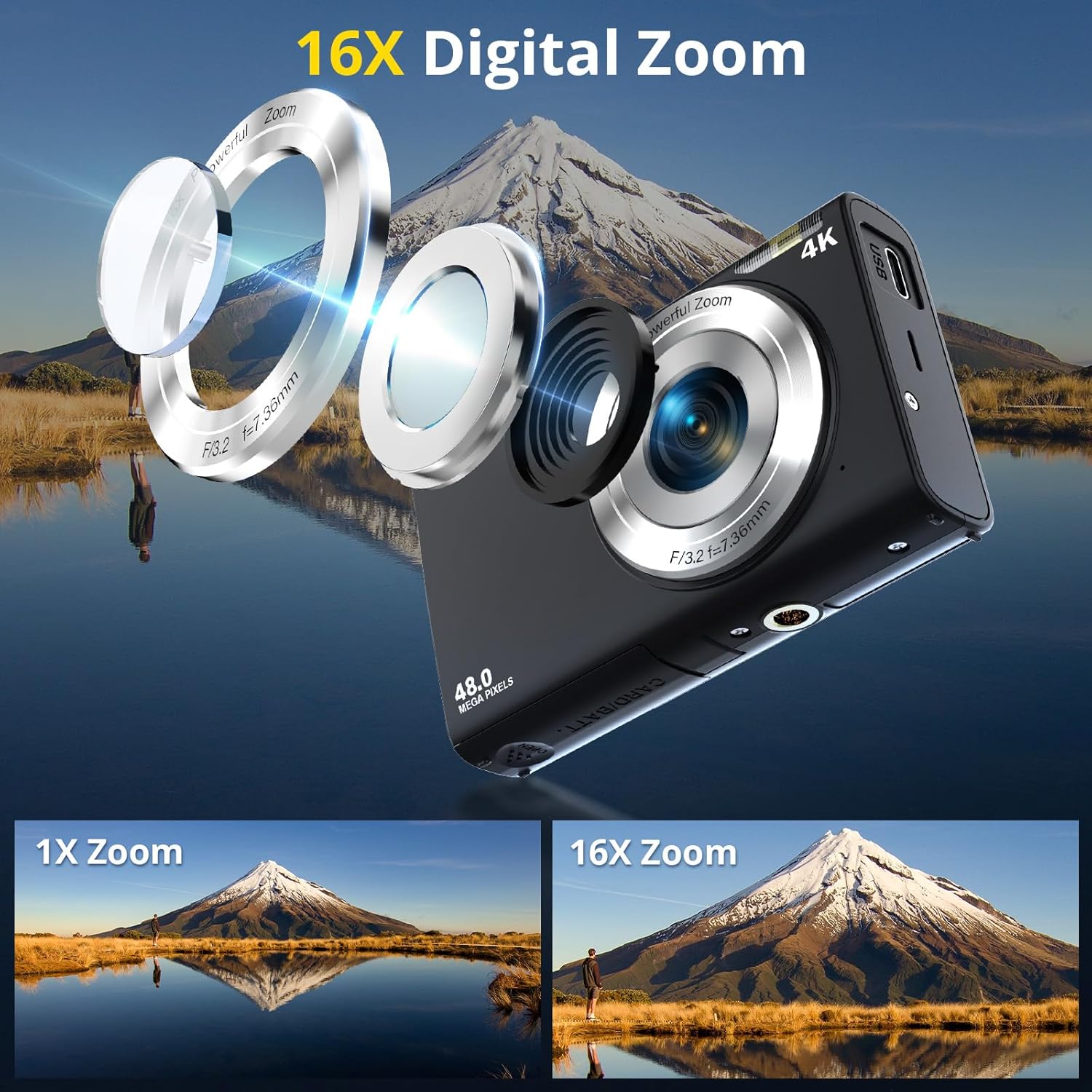 【48MP & 4K Full HD Digital Camera】The Anteam digital camera captures high-resolution photos and videos with the 48MP CMOS sensor and Full HD 4K video recording. Whether you’re sharing your adventures or starting a YouTube channel, this camera delivers crisp, detailed shots that will bring your memories to life.