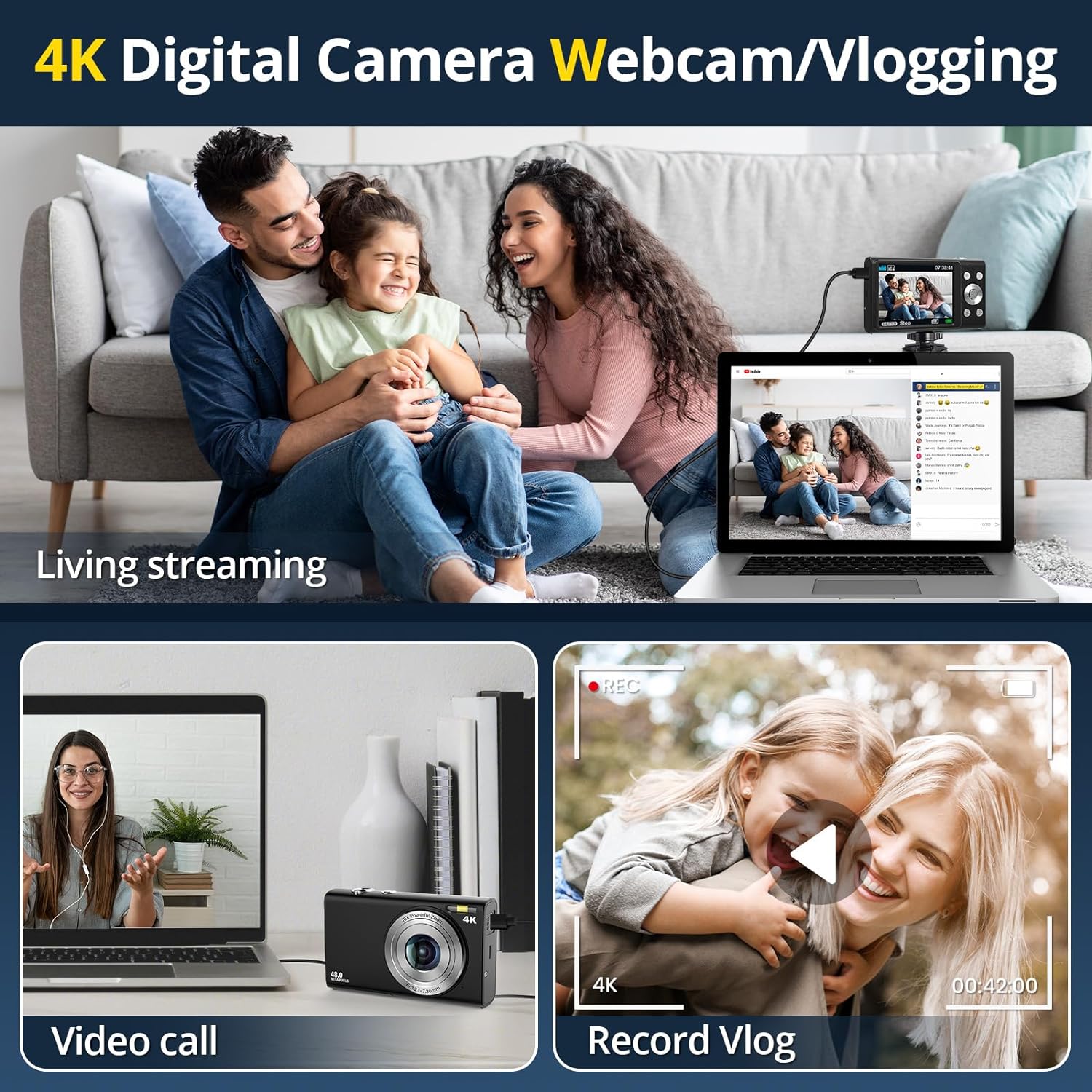Digital Camera, 4K FHD Auto Focus Vlogging Camera, 48MP 16X Zoom…