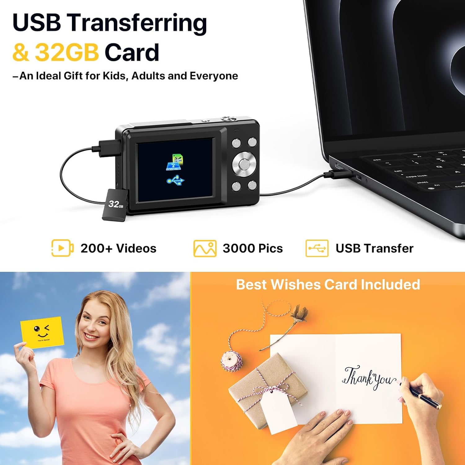 Best Wishes Card Compact Digital Camera for Kids/Teens/Students/Seniors/Beginners