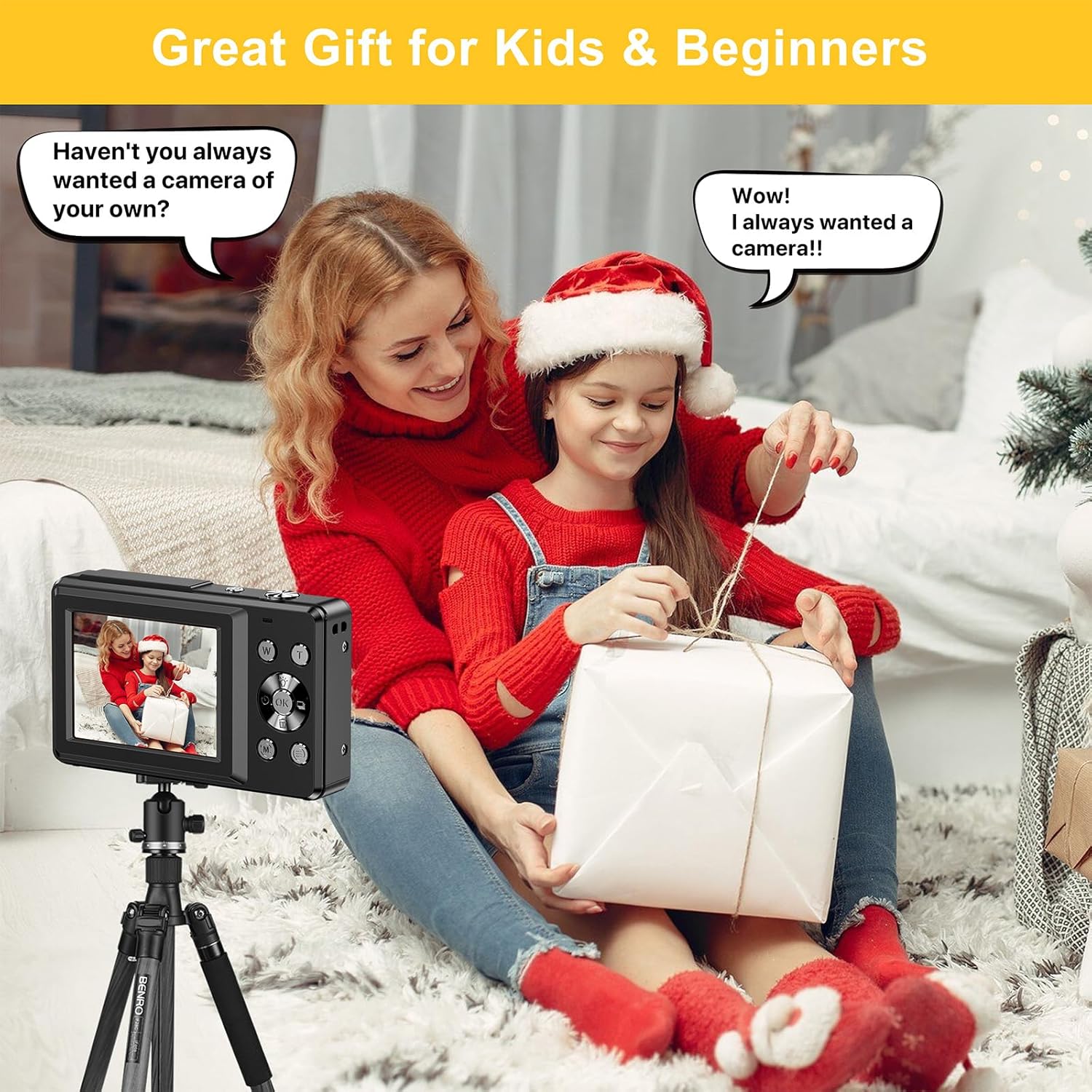 2024 UPGRADED DIGITAL CAMERA WITH BEST WISHES CARD: This camera uses the latest and most advanced CMOS chip, which helps you take and record the most exciting moments in 44MP quality pictures and FHD 1080P quality videos, there is also a built-in fill light to help you take high-quality pictures even in dark and low-light environments. This camera is an ideal gift for kids, adults and everyone. Includes a funny wish card that's perfect for all celebrations including birthdays, Christmas, best wishes, and any occasion.