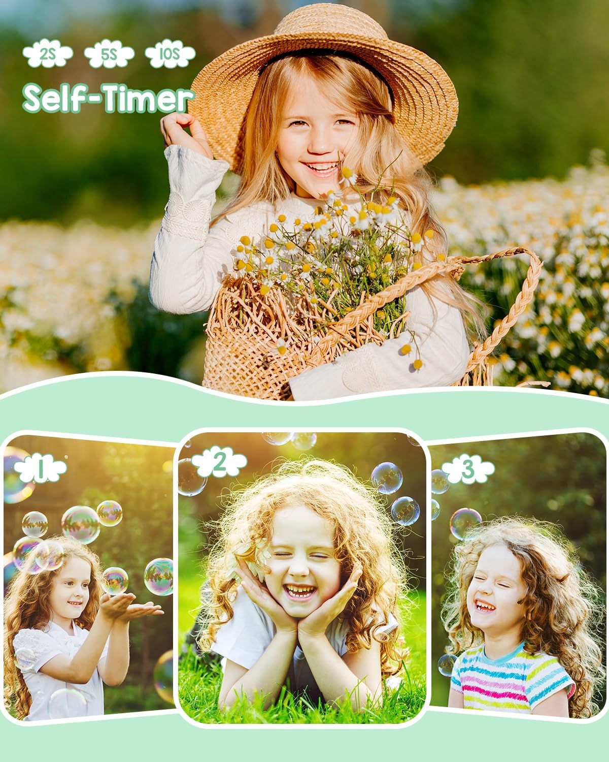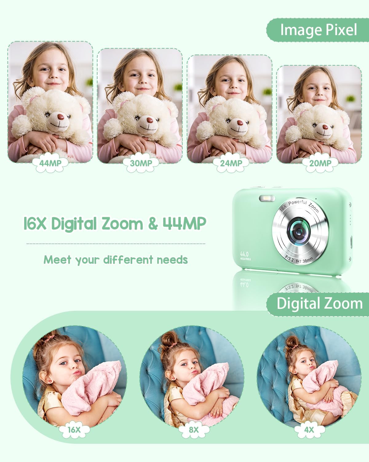 【1080P & 44MP FHD DIGITAL CAMERA】:Easily capture bright, vivid and clear images without complicated manual settings. This rechargeable digital camera captures high-definition FHD 1080P videos and 44MP photos, allowing you to enjoy stunning quality without missing a single detail. Press the shutter for one second, easy for beginners and children.