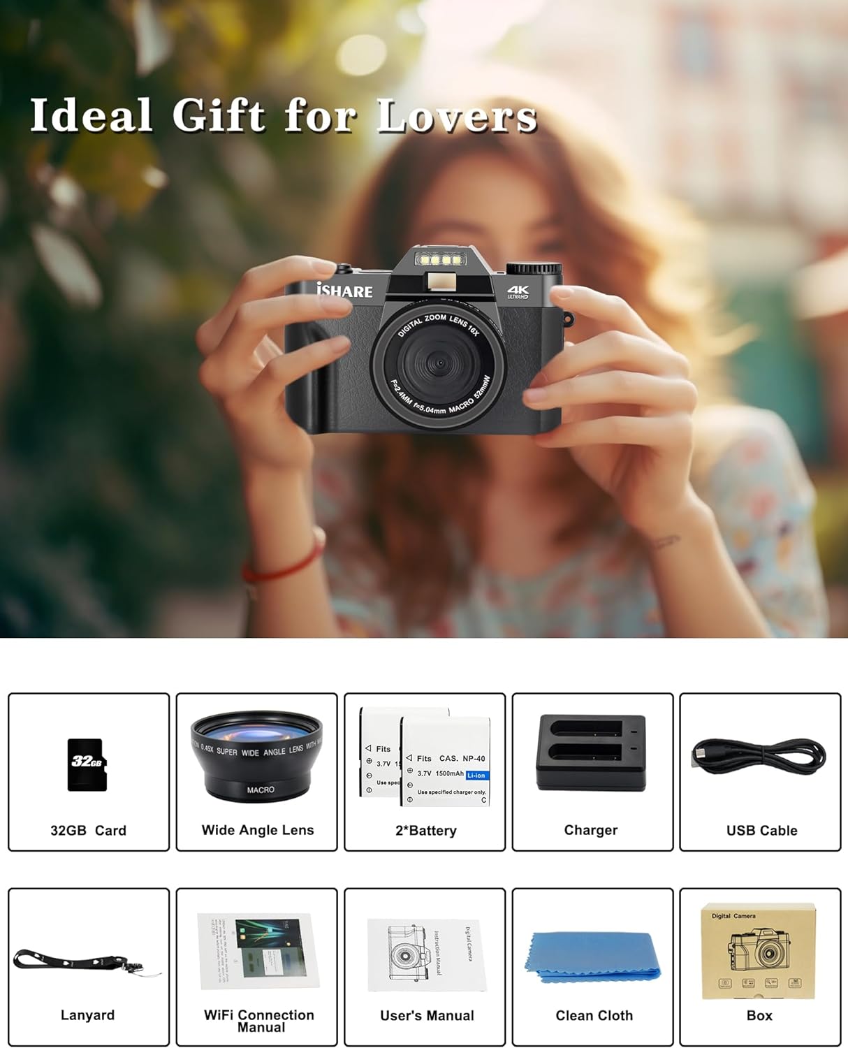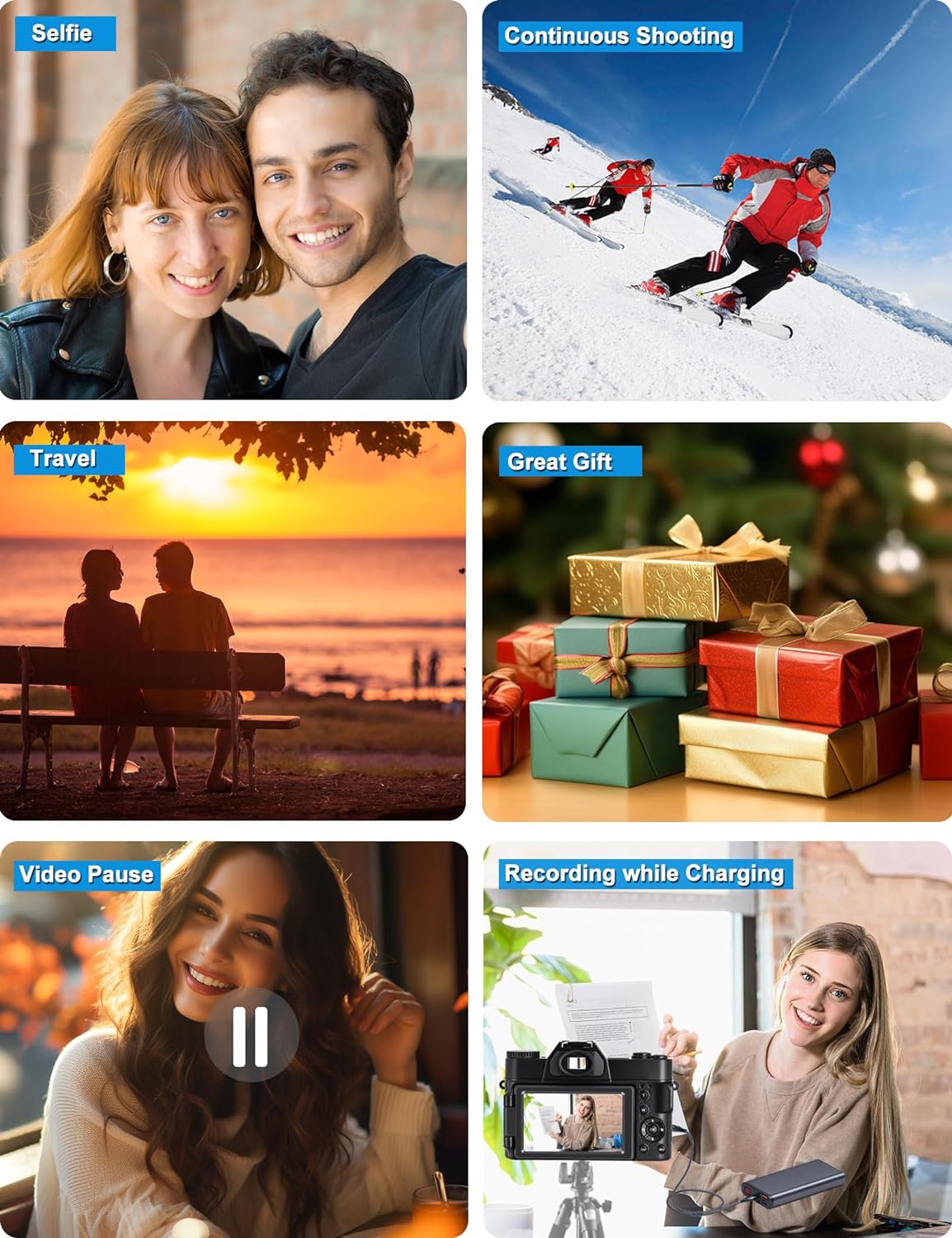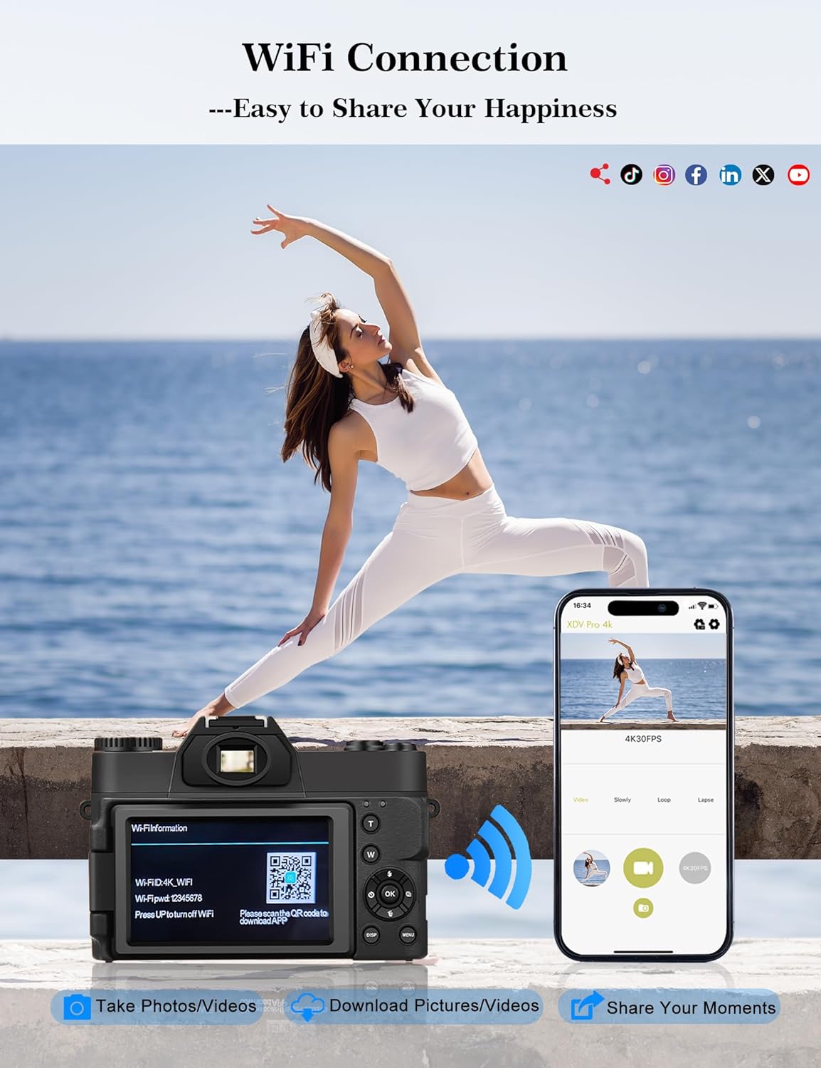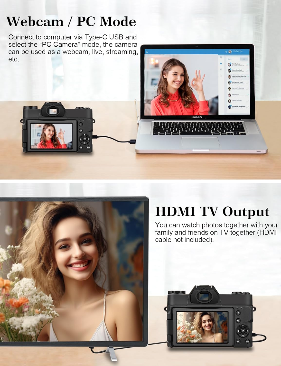 ★【Clear Image Quality】The 4k digital camera supports 4K video resolution and 56MP resolution. It can achieve excellent photography and recording effects. Record very high quality videos and capture wonderful moments, get more natural and realistic image quality.
