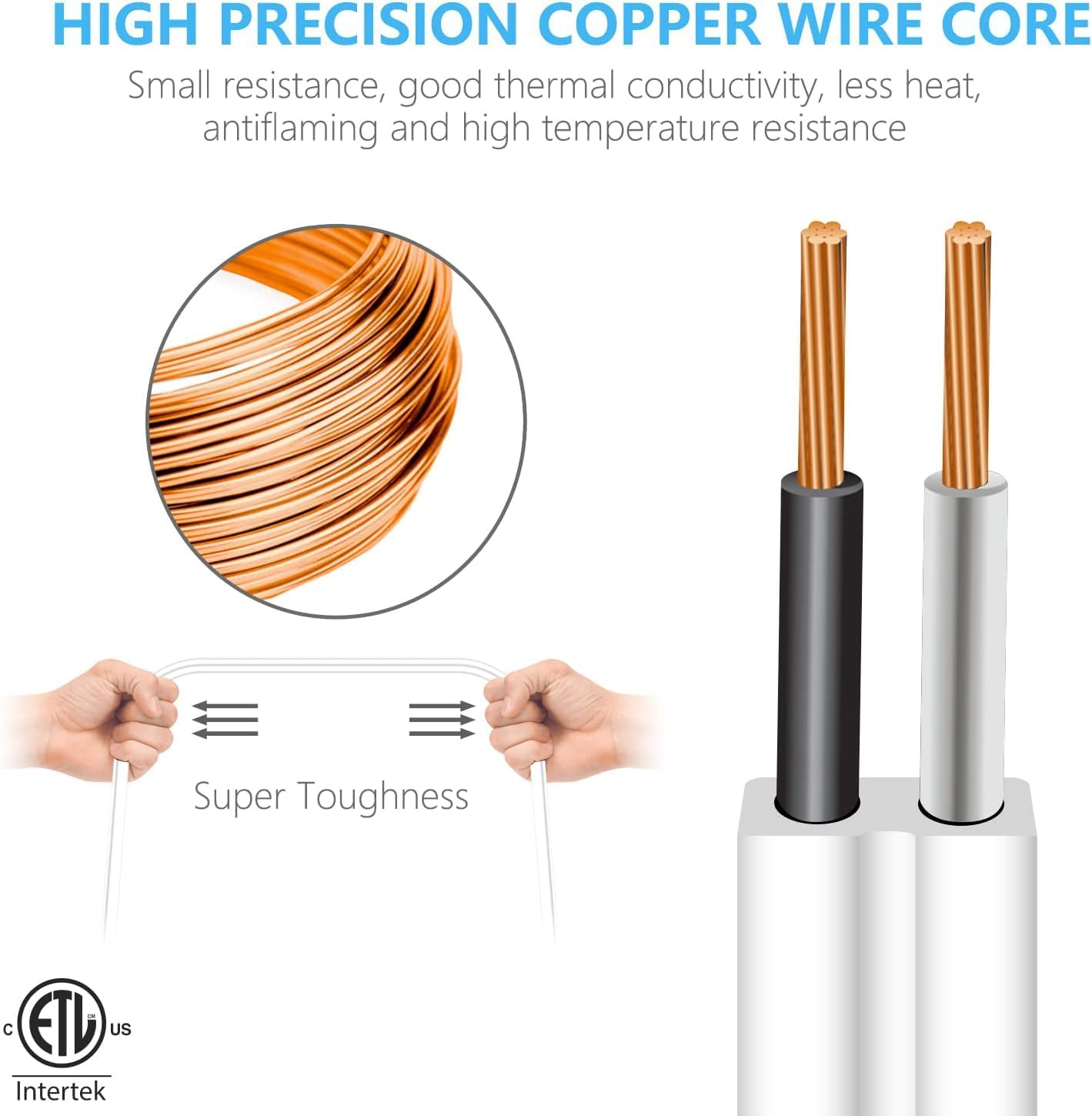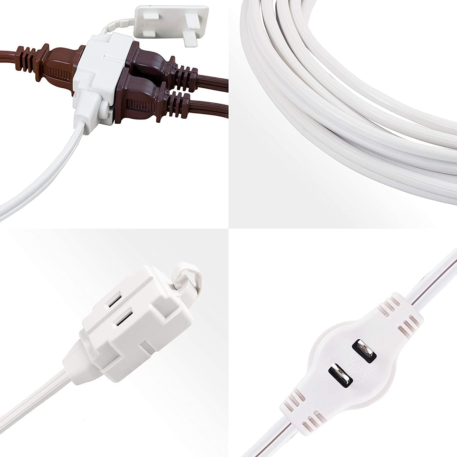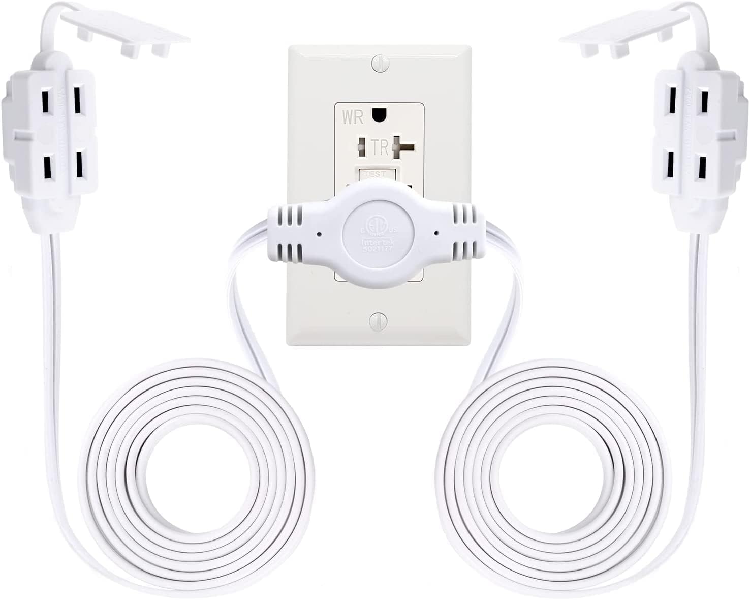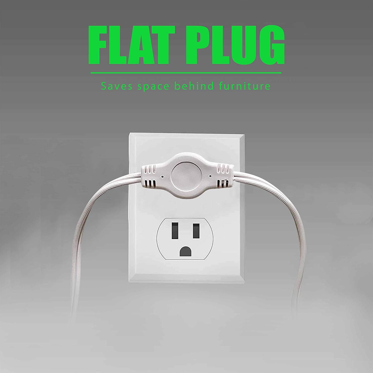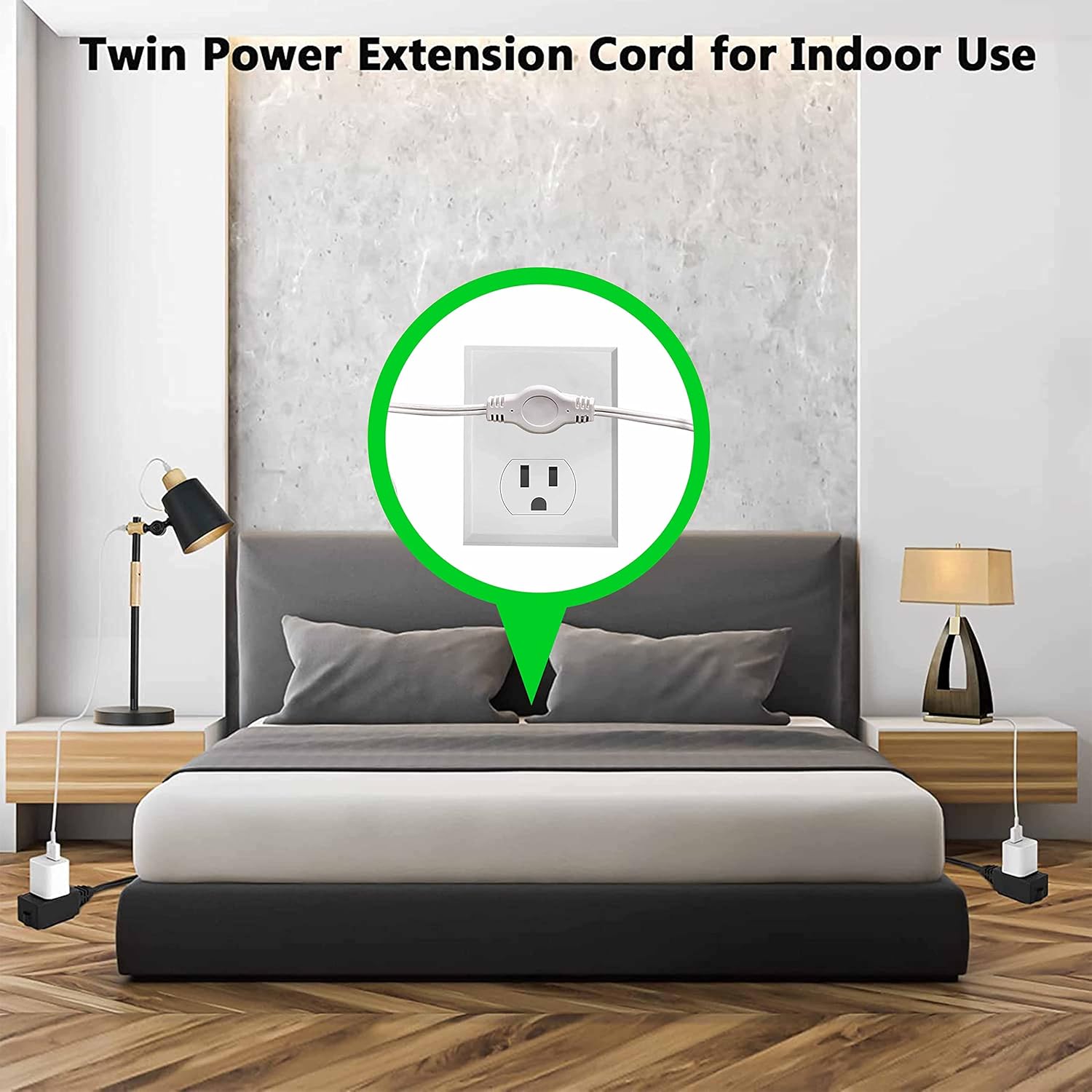 12 -foot twin cord, 6 -foot extension cables on each side of the divisor in the middle. The thin design allows you to hide behind any dressing table, table, television, bed, sofa, table, night table or furniture.