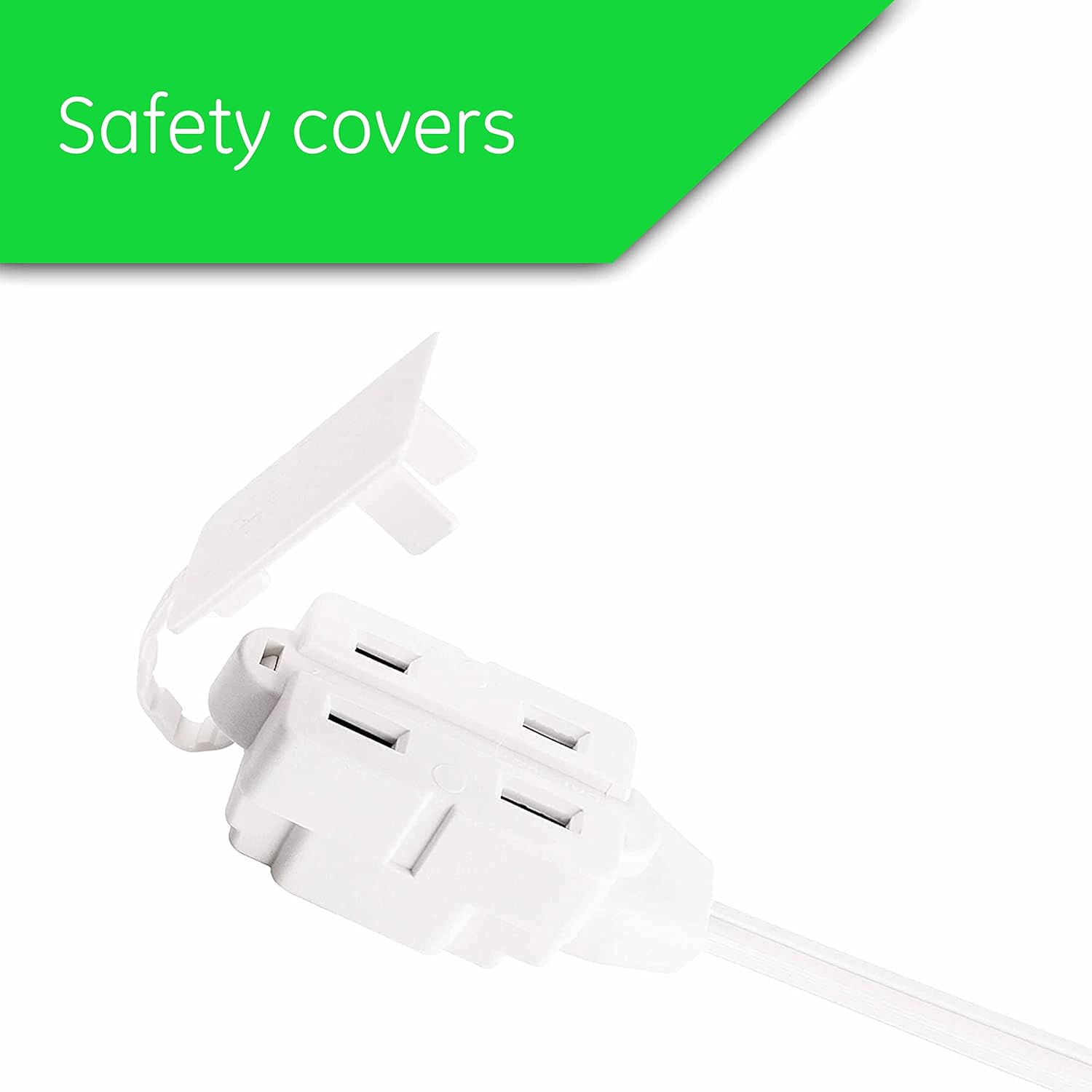 Double Twin extension cable cord – 12 feet cable – 6 feet on each side – flat head exit plug (wall clamp) – 6 polarized outputs with safety cover