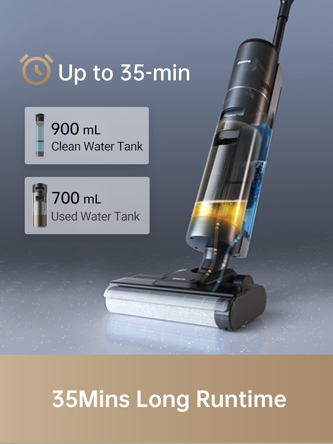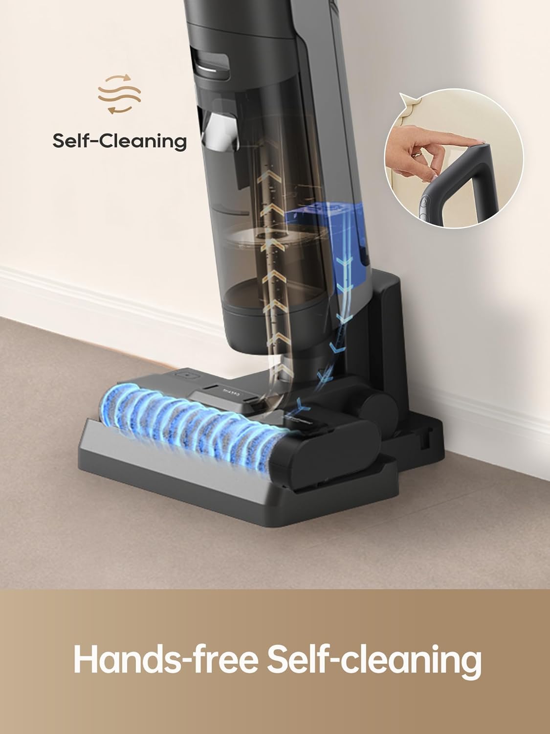 【Hot air drying restores spongy to the brush】- Once the brush washing is performed, the wireless vacuum mop dreame H12S will use the hot air of 131 ℉ to dry the brush automatically. In just an hour, the brush will be dry and ready for your next cleaning task.