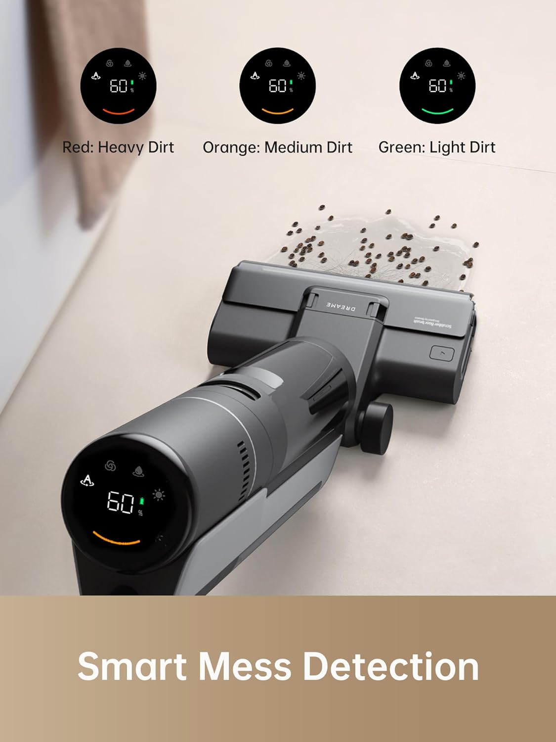 【Intelligent dirt detection and suction adjustment】- Draw H12S Dry Cleaner Dreame intelligently detects dirt levels and adjusts its suction accordingly so that it does not have to exercise an additional effort when scrubbing the stains.