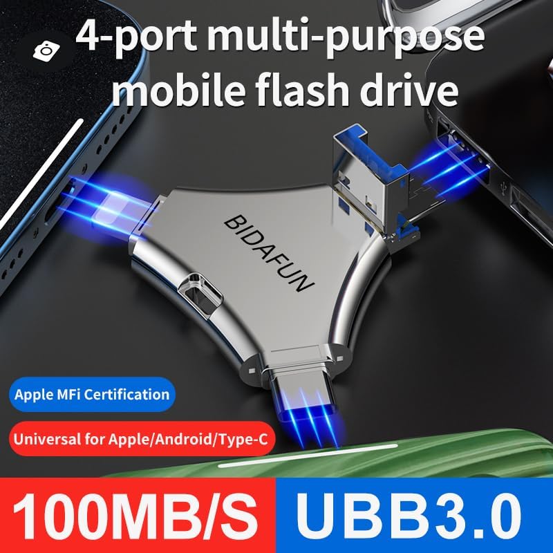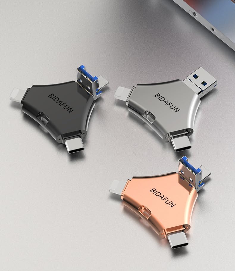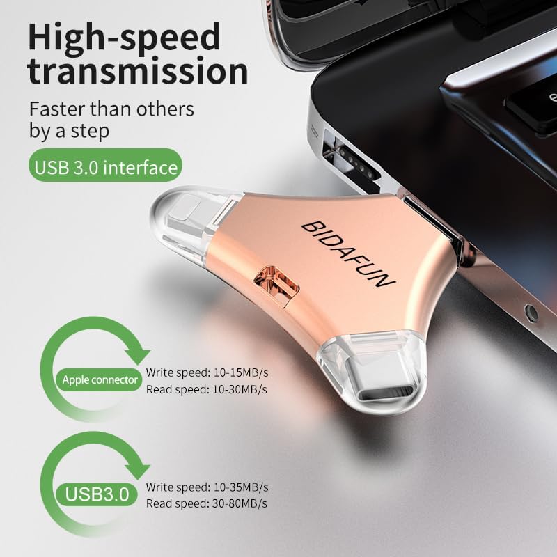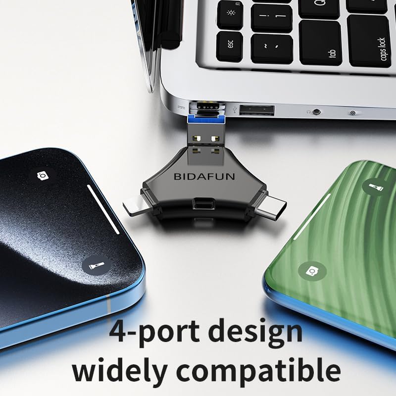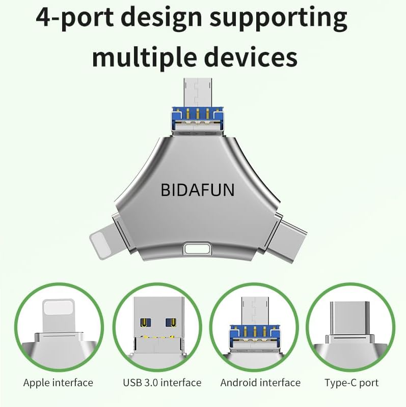 Universal compatibility in all devices: The high -speed Flash Flash Flash Unit 4in1 USB 3.0 designed with three connectors, the photo sick Bidafun guarantees compatibility with a wide matrix of devices, including iPhone models from 5 to 13 pro max, iPad series with light ports, imac, macbook, macbook air and several pc & laptops Running Android, iOS and Type-C computer systems, which makes it an essential access accessory for an essential obligations accessory to be a mandatory accessory for the entire accessory for all enthusiasts.