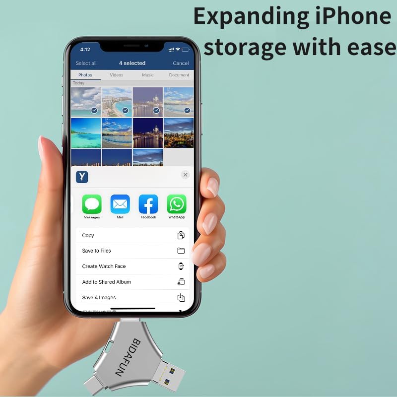 Flash Drive 4in1 USB 3.0 With for iPhone Photo USB-C Suitable Compact Design for computer Smartphone Stick Image Video Data Storage Vault Stick