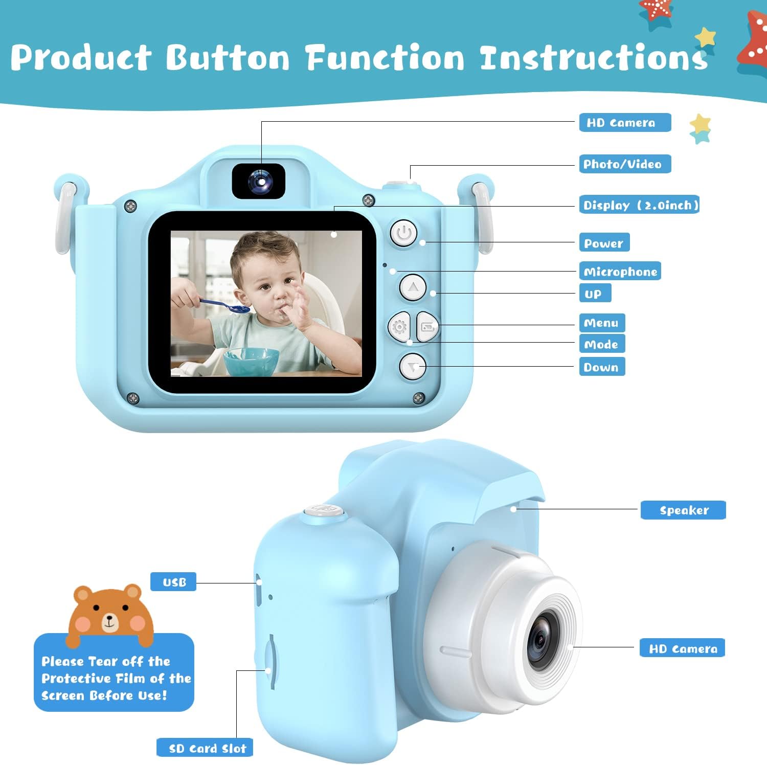 This cute kids camera is an ideal camera as a Christmas gift, birthday gift, holiday gift for your kids, boys and girls aged 3-12.