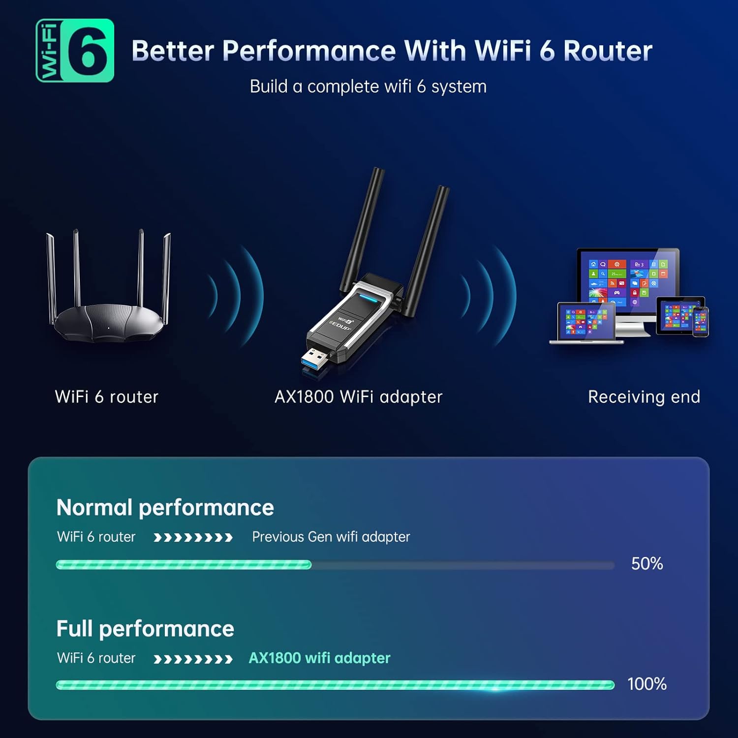 AX1800 USB WiFi 6 Adapter for Desktop PC, Dual Band 5GHz+2.4…