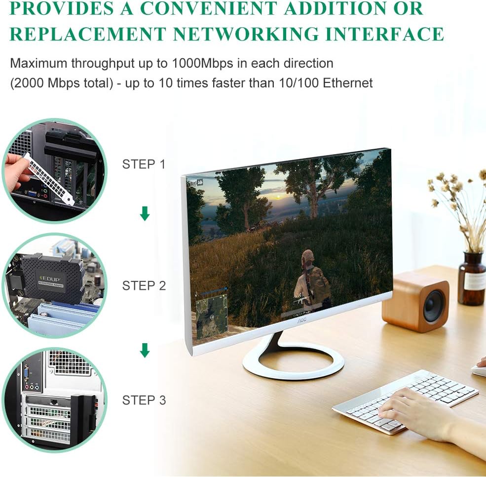 The Gigabit Ethernet Gigabit Ethernet network adapter with EDUP PCI headquarters provides a simple connection to a Gigabit Ethernet network, and is fully compatible with the 802 label. 1Q Virtual LAN (VLAN). And Ethernet card that meets IEEE802. 3, IEEE802. 3u e IEEE802. 3ab.