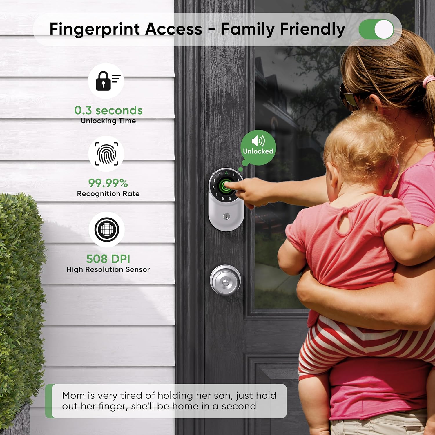 Family Friendly: Fingerprint unlock for family members, unlock in just 0.3 seconds, recognition rate up to 99.99%, equipped with 508 DPI high-resolution sensor.