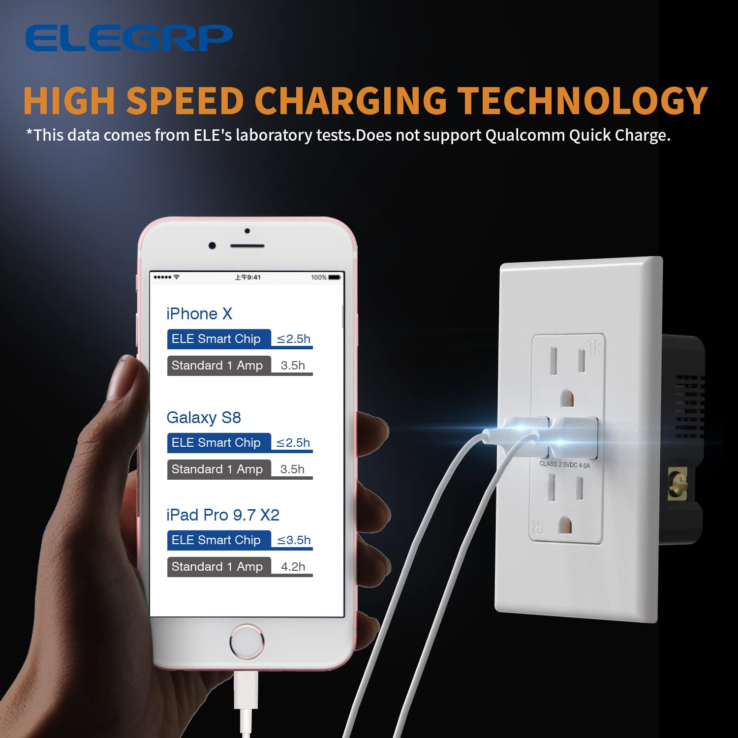 ELEGRP USB Wall Power Outlet Receptacle with Dual 4.0A USB Ports,…