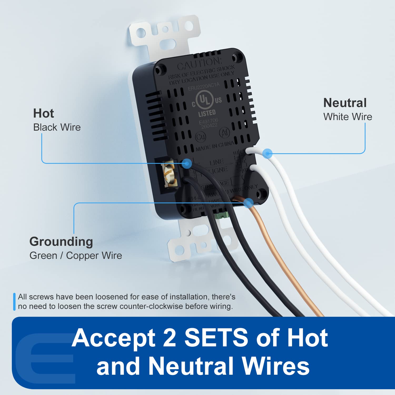 ✅【Easy to Install】Supports side and back wiring. All screws have been loosened for easy installation, no need to loosen them counterclockwise before wiring. Fits into a standard wall box. Can replace existing power outlets. Compatible with standard wall plates and can be plugged into multiple devices. Provides more room to maneuver and reduces strain on USB cables.