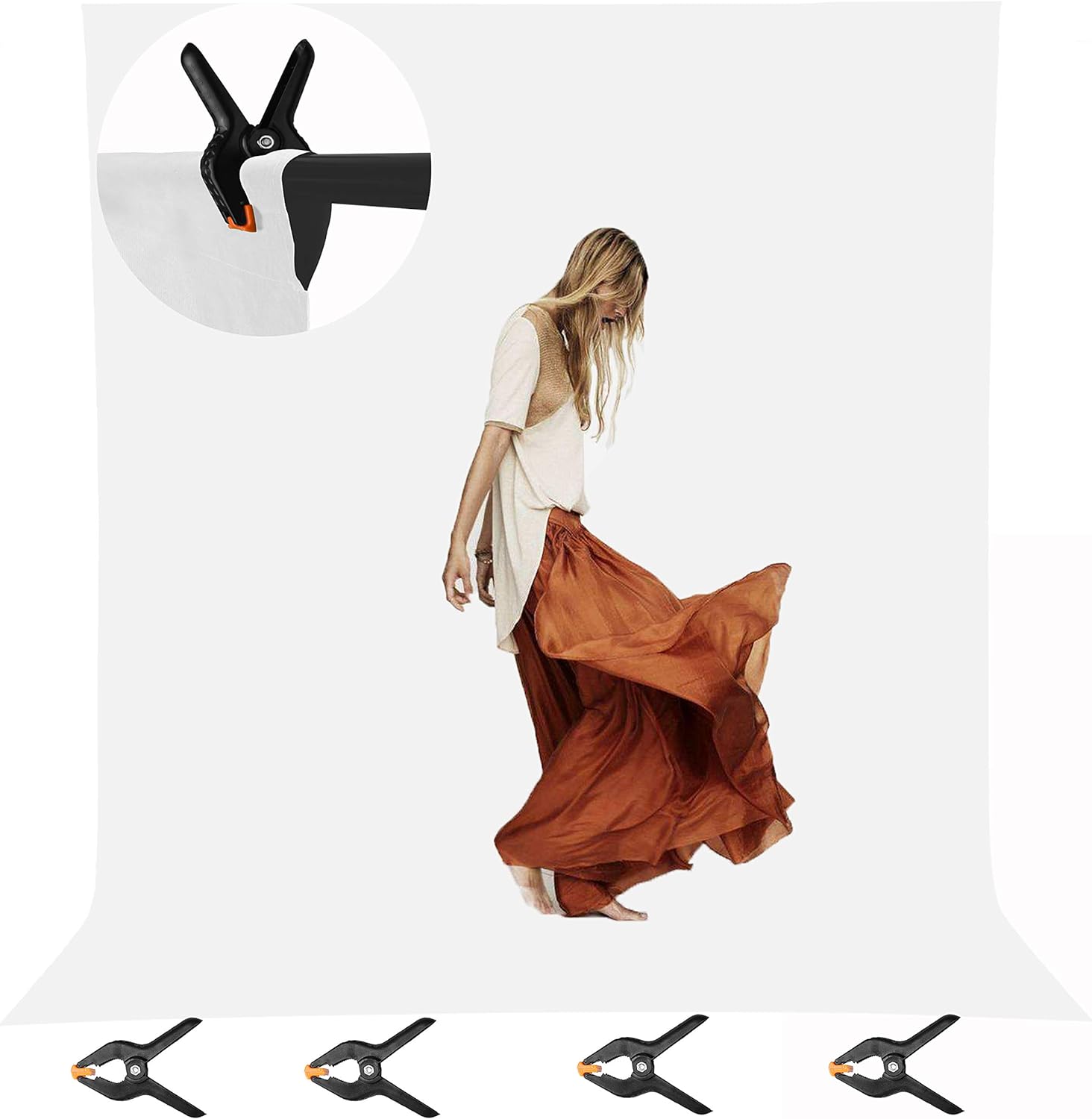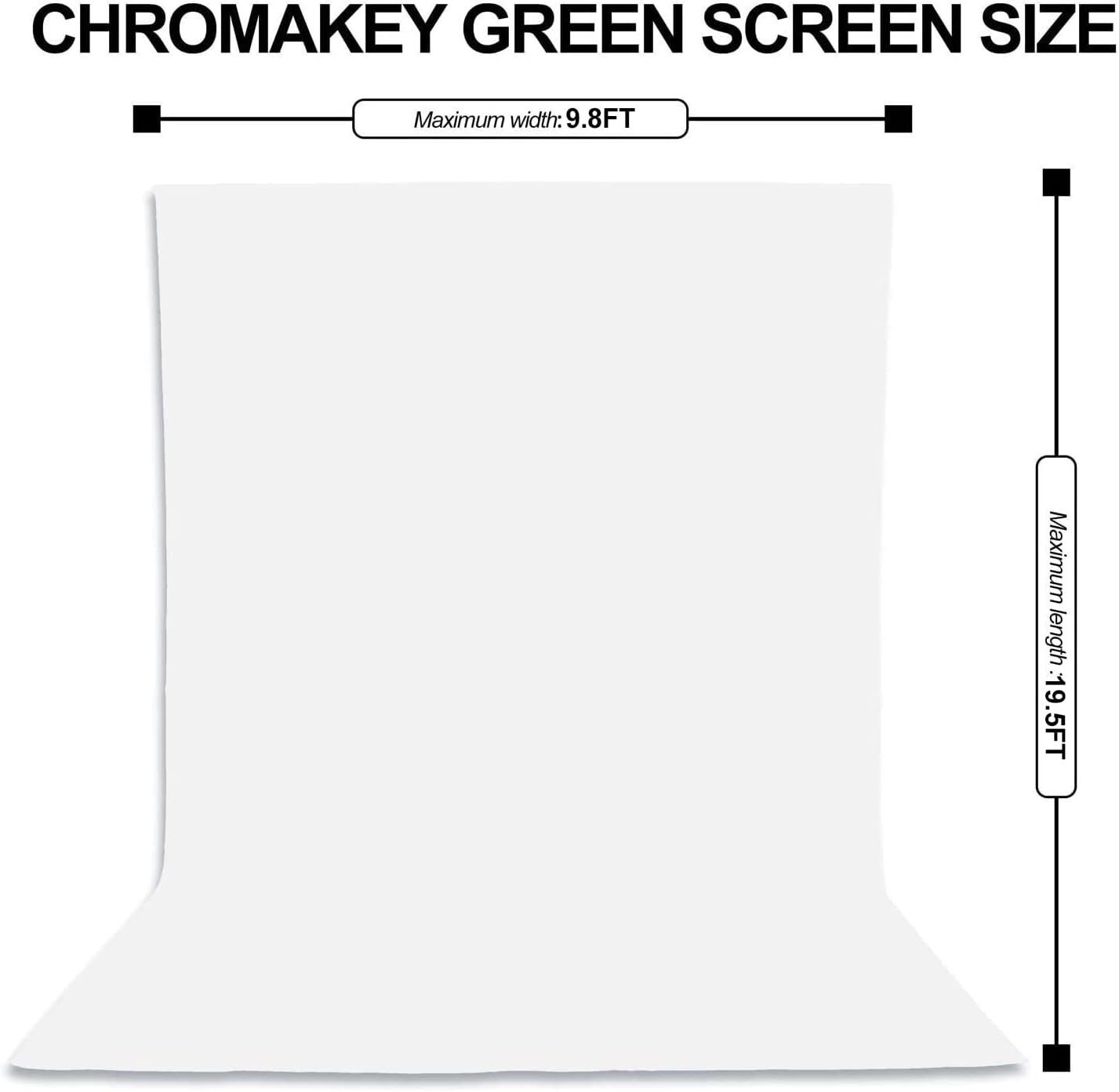 Package content: [1x] 9.8ft wide x 19.5ft high white muslin backdrop screen, [4x] bottom clamps