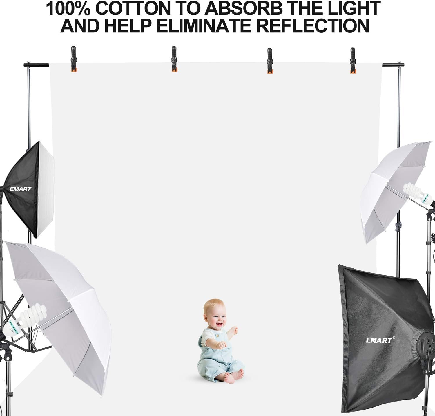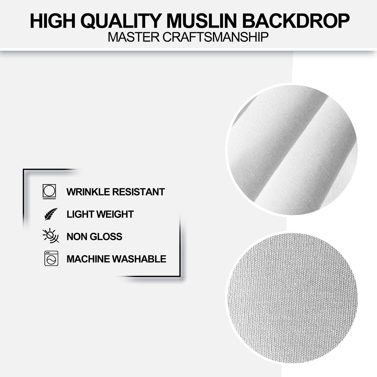 Washable white screen: The white background can be washed and ironed. 100% cotton to absorb light and help eliminate reflections.