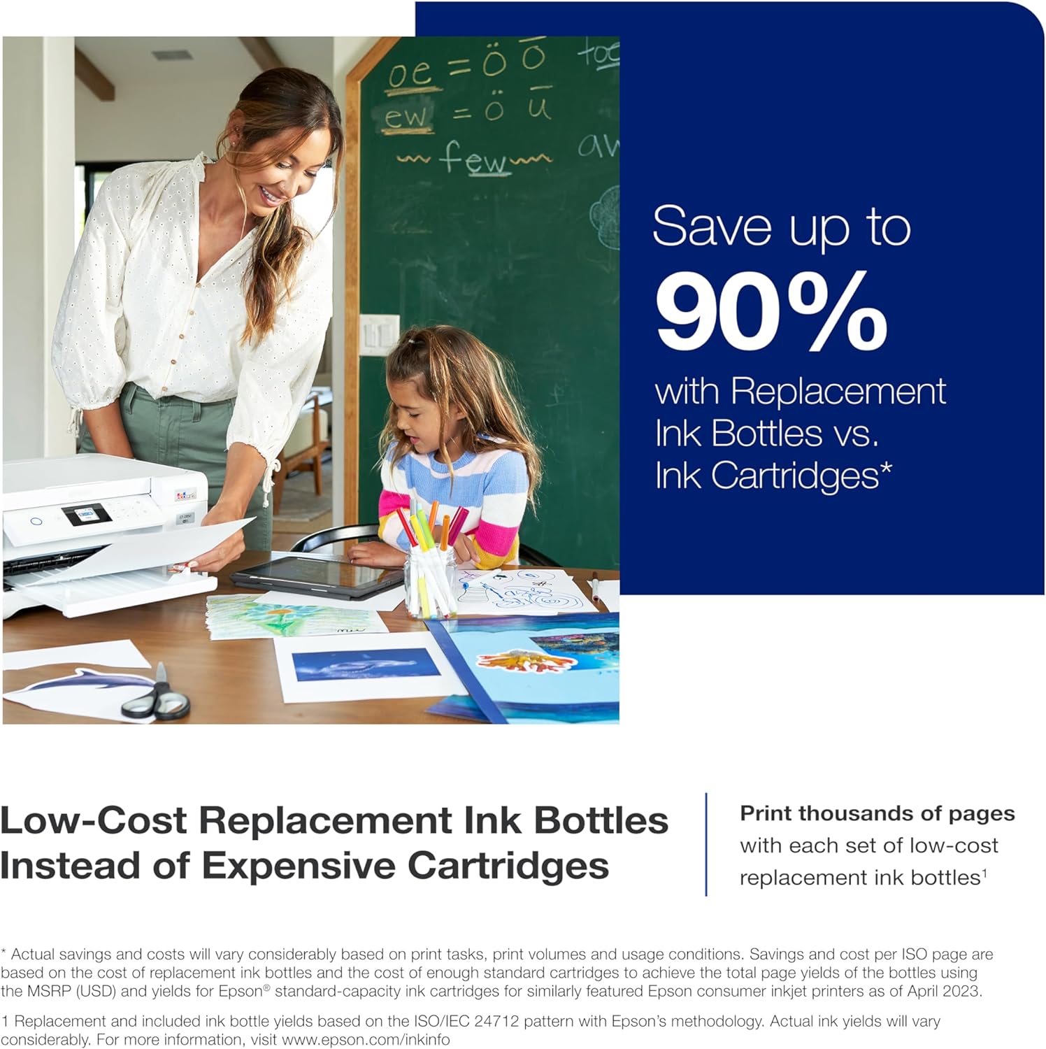 Your home needs a printer that is fast, affordable, easy to use and have excellent characteristics. That is why we develop the ECOANK ET-2850, an innovative solution without cartridge that uses high capacity and easily rechargeable ink tanks. Therefore, you will worry less about running out of ink and saving a lot in the replacement ink (1). The ET-2850 presents an outstanding print quality, self-plex printing, a high-resolution platform scanner and a convenient color screen, which makes it the perfect family printer. Epson strongly recommends the use of genuine ink to guarantee optimal quality quality and performance. The use of non -genuine ink could cause damage not covered by the LTD of the printer. Wnty | 1. The real savings and costs will vary considerably depending on printing tasks, print volumes and conditions of use. The savings and the cost per ISO page are based on the cost of replacement ink bottles and the cost of sufficient standard cartridges to achieve total back page of the bottles using the MSRP (USD) and yields for cartridges Epson standard capacity ink for Epson. Consumer ink injection printers from March 2024. 2. Estimation of individual cartridges according to the printing yields of a set of black and black ink bottles compared to Epson standard capacity ink cartridges Outstanding printers similar to March 2024. 3. Part of the ink of the bottles included is used for the initial configuration; The yields are lower than those of replacement ink bottles. Replacement and including ink bottle yields based on the ISO/IEC 24712 pattern with Epson's methodology. Real ink yields will vary considerably for reasons that include printed images, printing, temperature and humidity settings. The yields can be lower when printed shortly or predominantly with an ink color. All ink colors are used for the printing and maintenance of the printer, and all colors must be available for printing. For more information, visit www.epson.com/inkinfo | 4. Based on average of printing volumes of monthly documents of approximately 150 pages. | 5. See www.epson.com/voice for the compatibility of the device. Epson Connect account and voice -activated account registration are required. | 6. Most of the characteristics require an Internet connection to the printer, as well as a device enabled for Internet and/or email. To obtain a list of enabled printers for Epson Connect and compatible devices and applications, visit www.epson.com/connect | 7. Requires download of the Epson Smart Panel application. Data use rates can be applied.