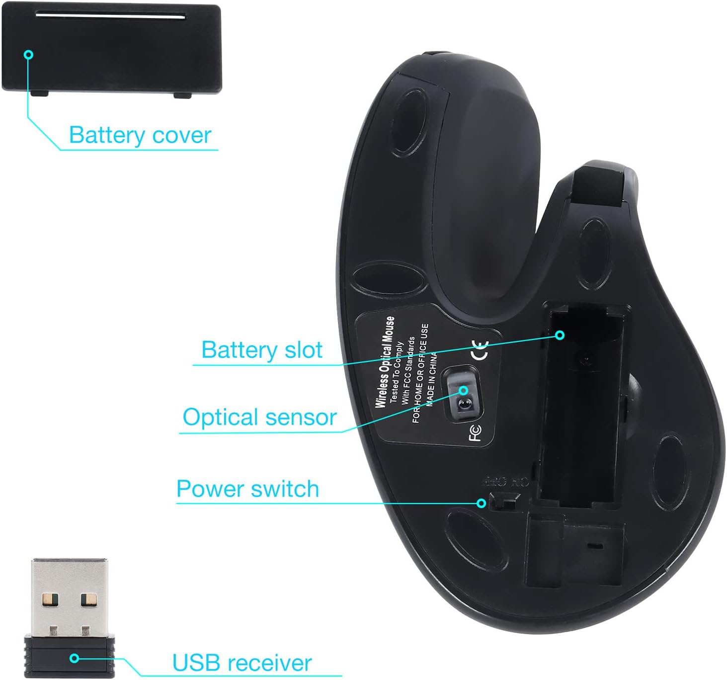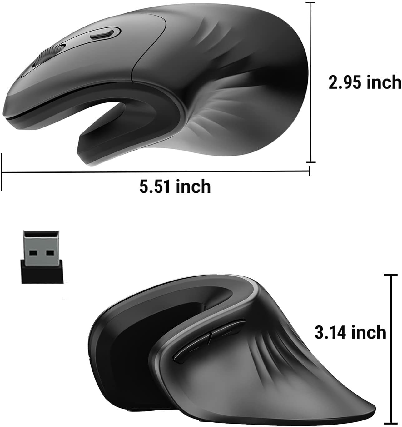 【Ergonomic design】 Note: The USB receiver is at the bottom of the mouse. The vertical angle of 54 ° exclusive encourages a healthy doll and forearm posture that reduces muscle tension, so that its doll and the softer forearm and less general tension. The vertical mouse is designed for daily work and makes work more comfortable!