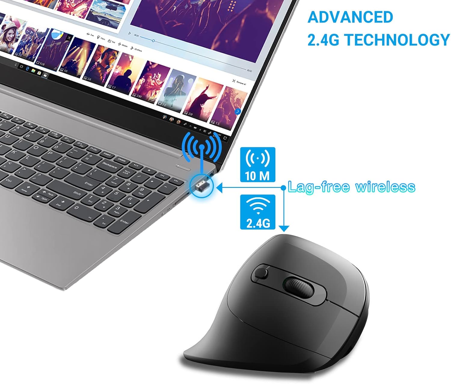 【Advanced wireless technology of 2.4GHz】 The wireless mouse can be used at a working distance up to 10 m without interference. Plug & Play, enjoy the convenience of a data transmission without tangles and fast. You do not need to download any controller or software, simply plug the USB plug to the port of your computer and you can use the vertical mouse immediately.