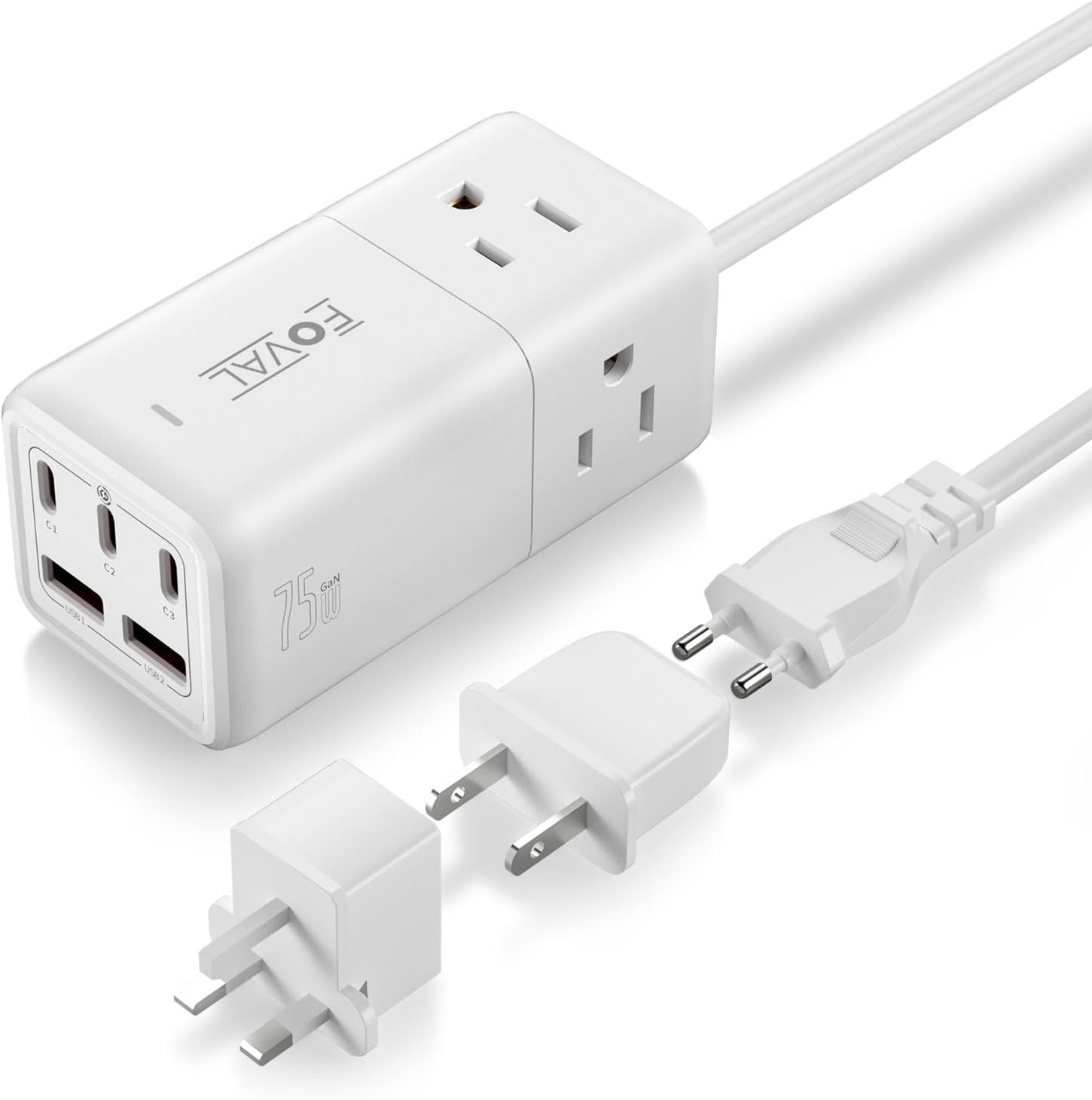75W Gan Fast Charger: One of the USB-C PD ports can even reach an incredible high speed of 75W. The load speed is 5 times faster than the standard 5V/2.4A charger. With this power strip, you don't need to waste your precious travel time waiting for a long position! It is ideal for most devices, especially for your iPhone 15/14/13, MacBook, iPad, laptop computers, hair dryer, hair iron/curling, e-aheitator, electric toothbrush, nebulizer, xbox, etc.