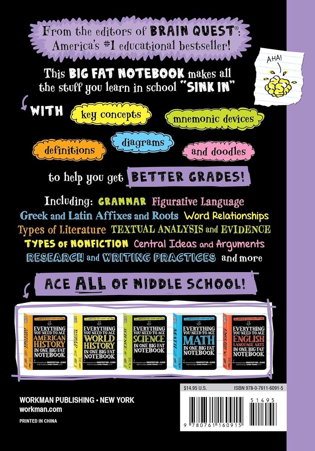 For every middle school or high school student who has ever whispered, “Hey, can I borrow your notes?” There's the Big Fat Notebook series, a revolutionary study guide series created by the editors of America's #1 educational bestseller, Brain Quest. Each study guide is like borrowing the notebook of the smartest kid in class and includes highlighted key concepts, doodles that illuminate complicated ideas, mnemonics, and more.