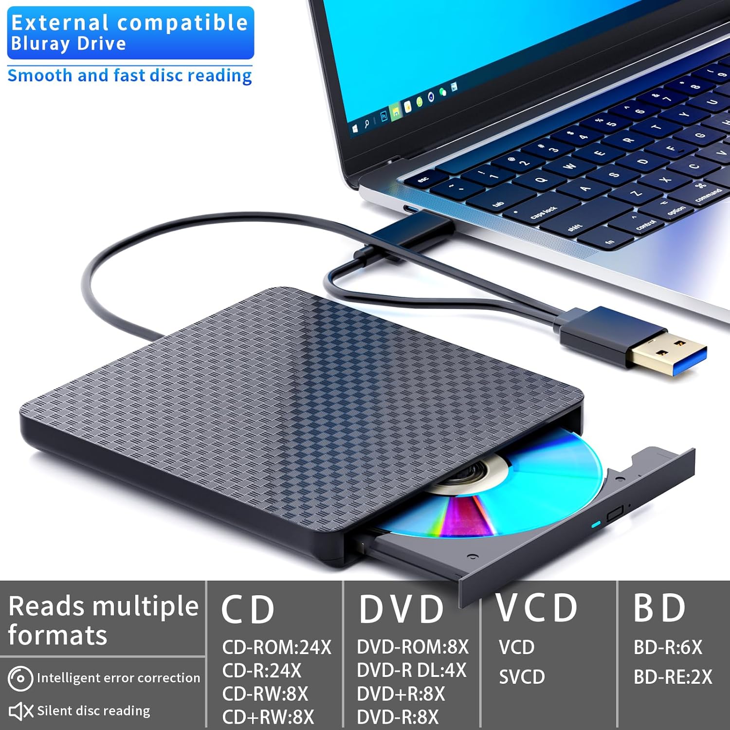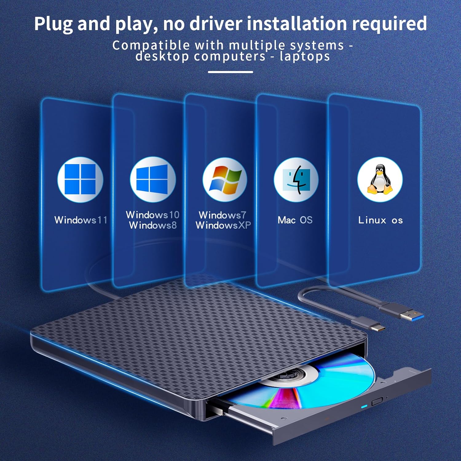 【Easy to transport】: This external compatible Blu-ray unit combines two different cables in one. Compatible with most computers with USB and type C interfaces in the market