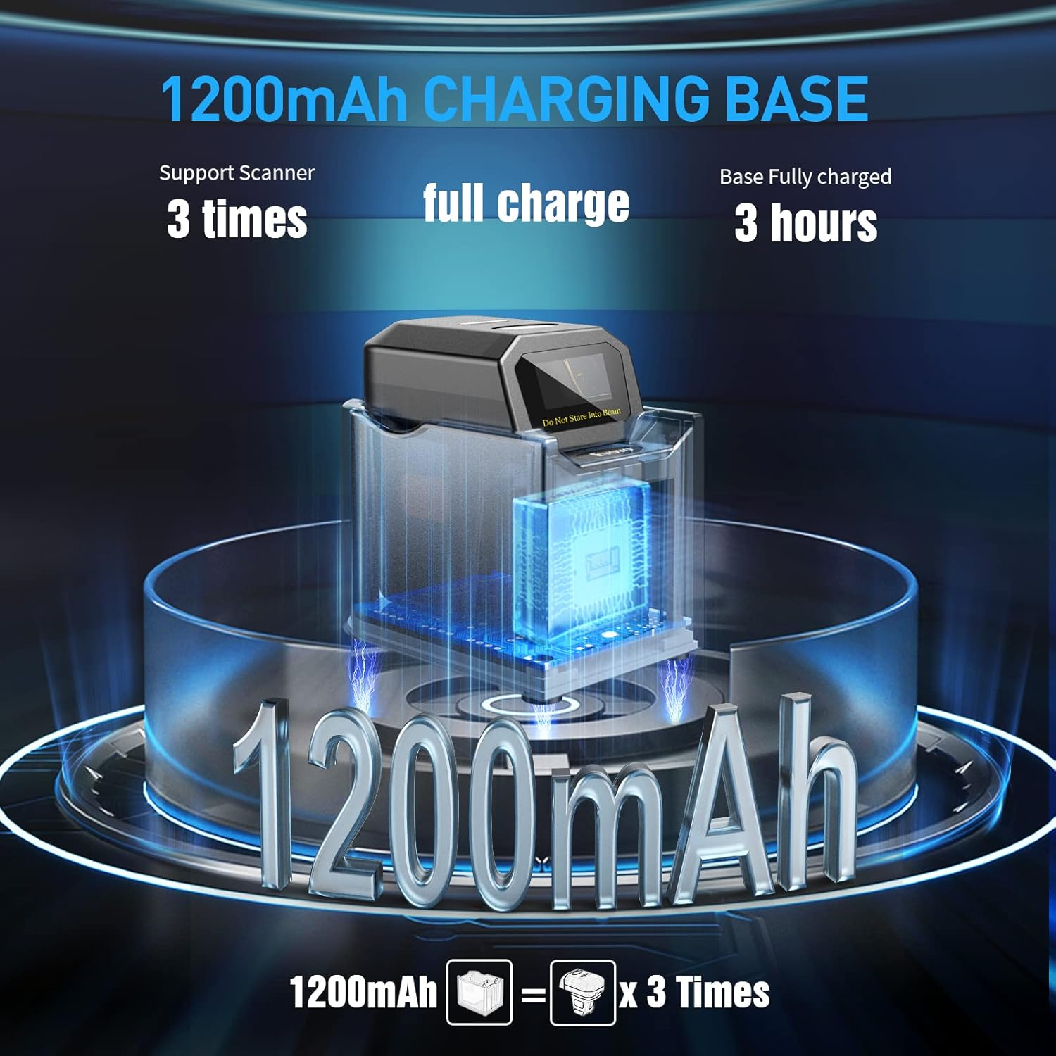 The wireless load base has a 1200 mAh built -in rechargeable battery, which can support the barcode scanner up to 3 times