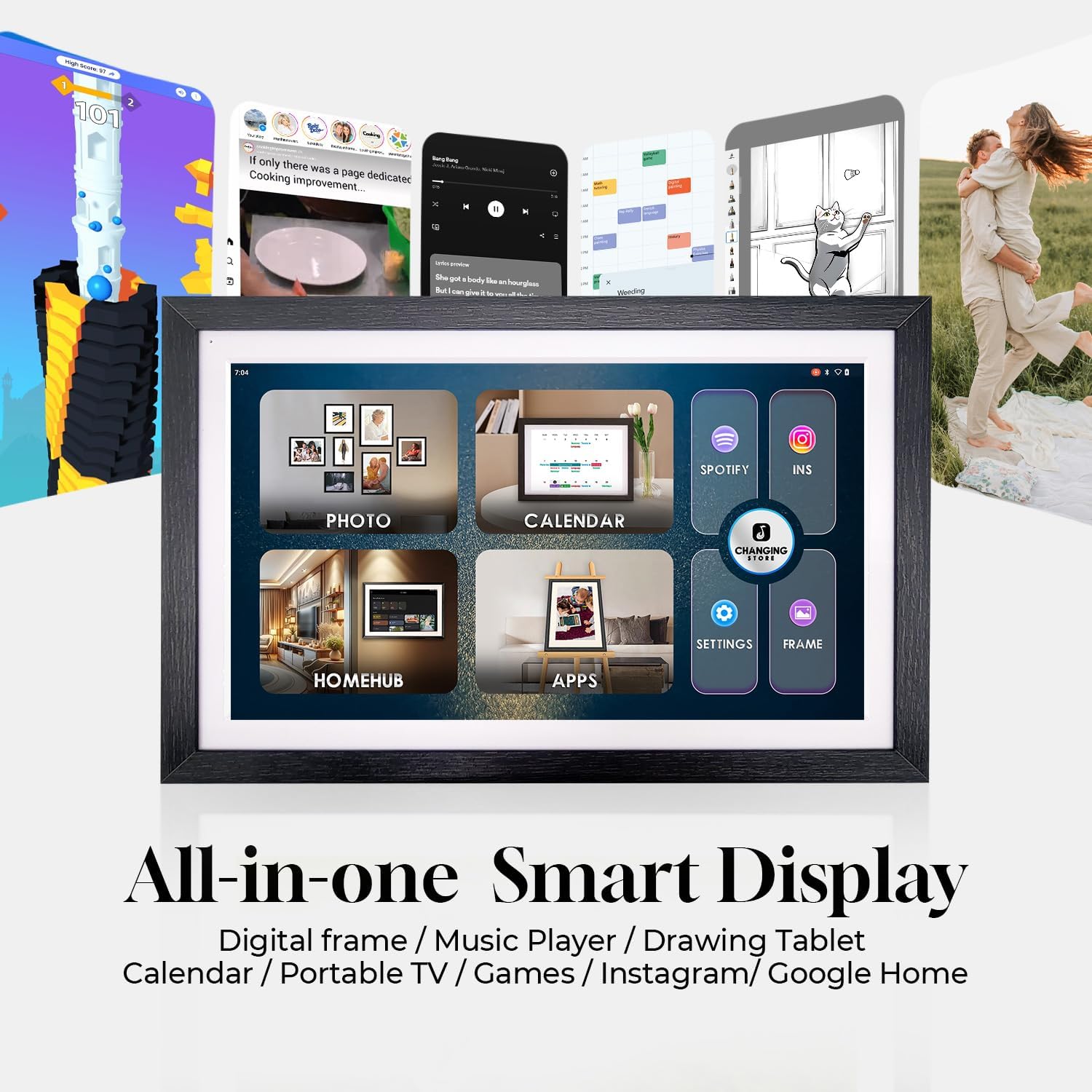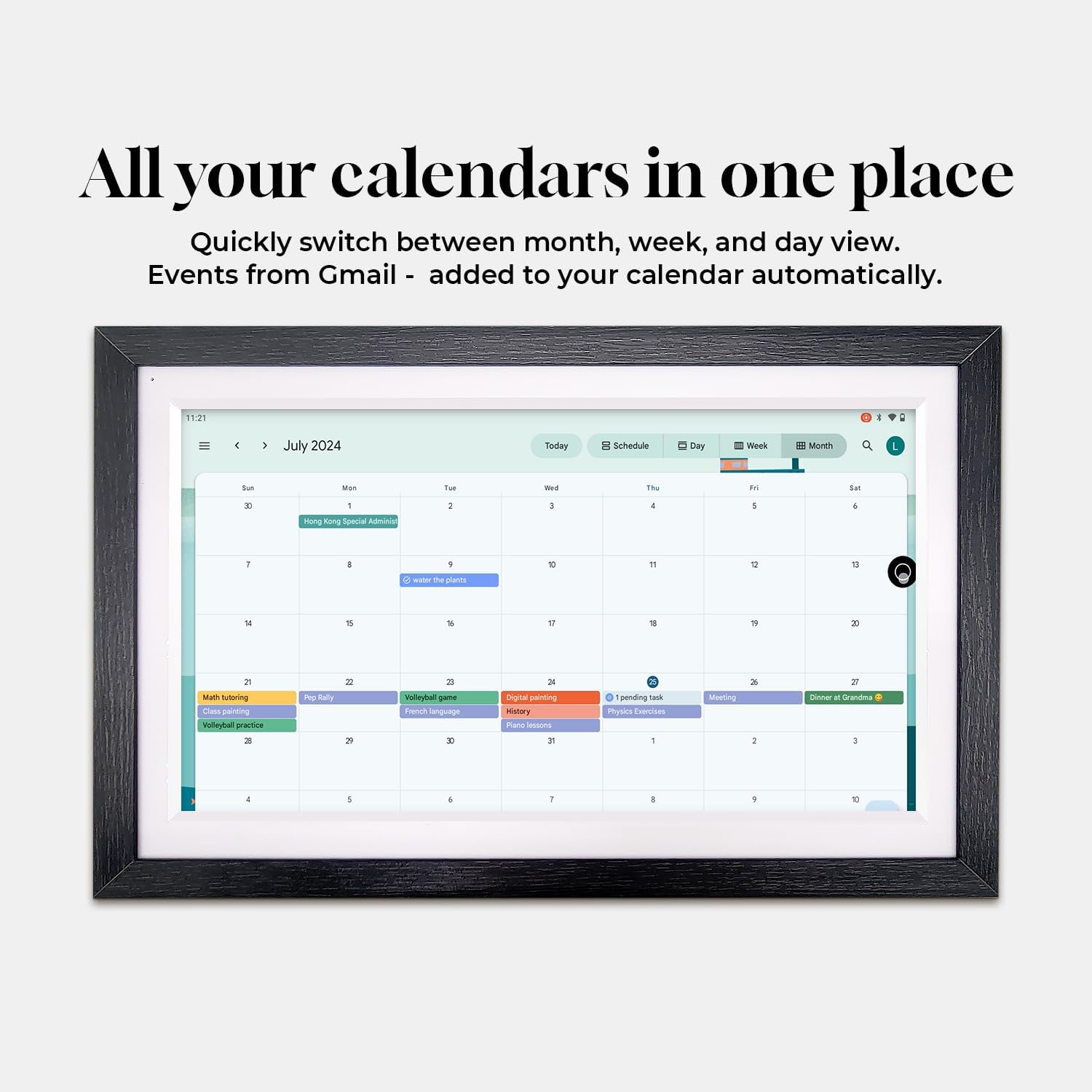 2. Seamless integration with Google Calendar and smart apps Your family life is now easier with Google Calendar integrated into the Changingtouch F16S. Effortlessly manage your schedules, reminders and events with real-time updates on the big screen. Plus, with Google Photos and 15GB of cloud storage, your photos and videos are securely stored and your favorite memories are just a tap away. Say “Hey Google” to activate Google Voice Assistant and use Google Home to control your smart devices from one place.
