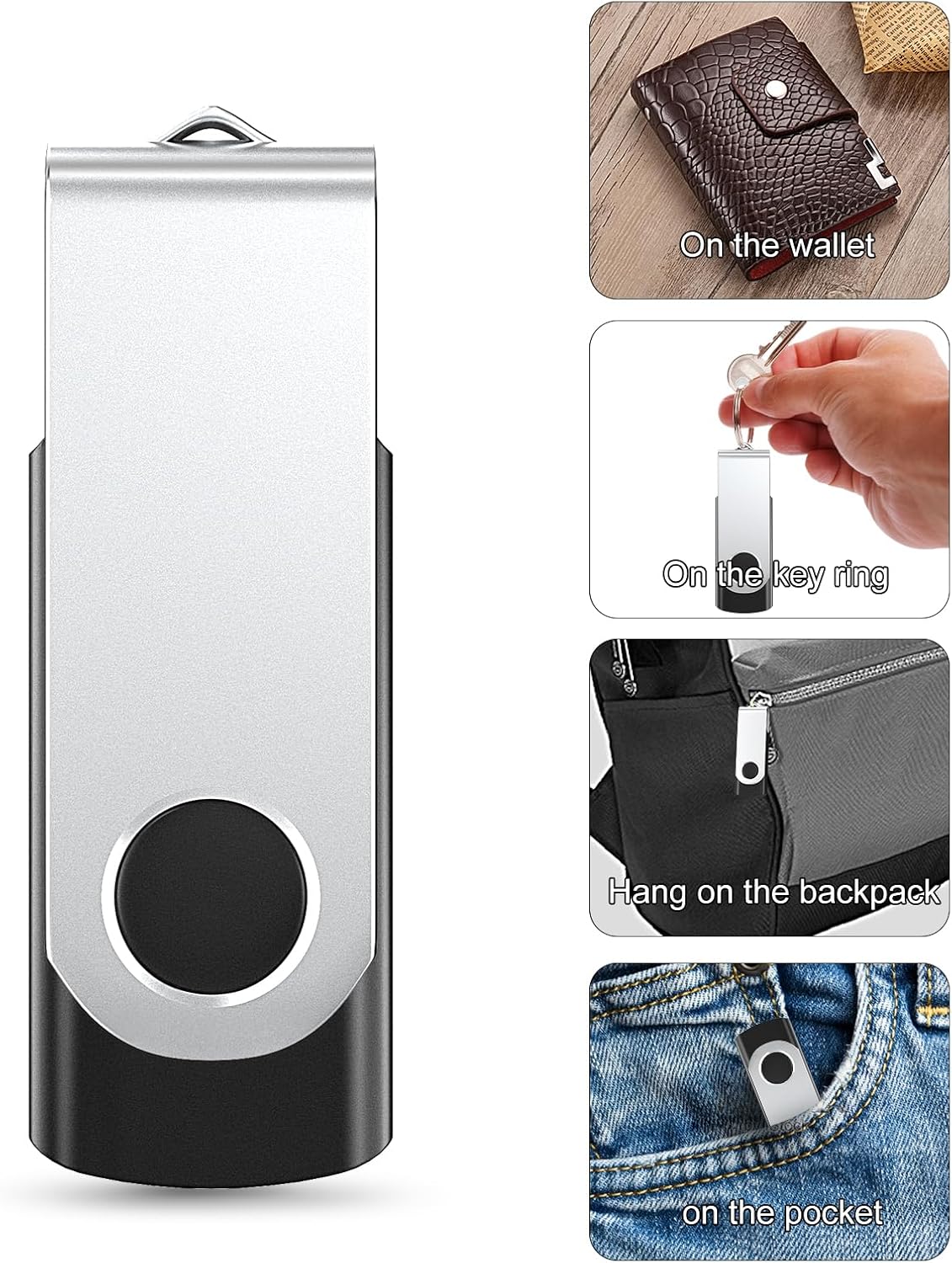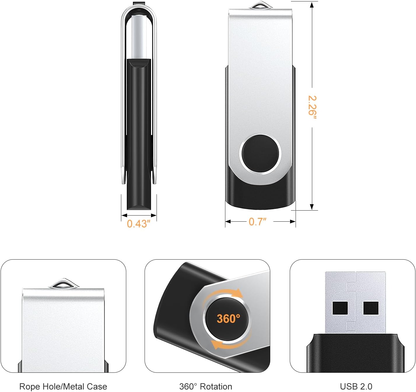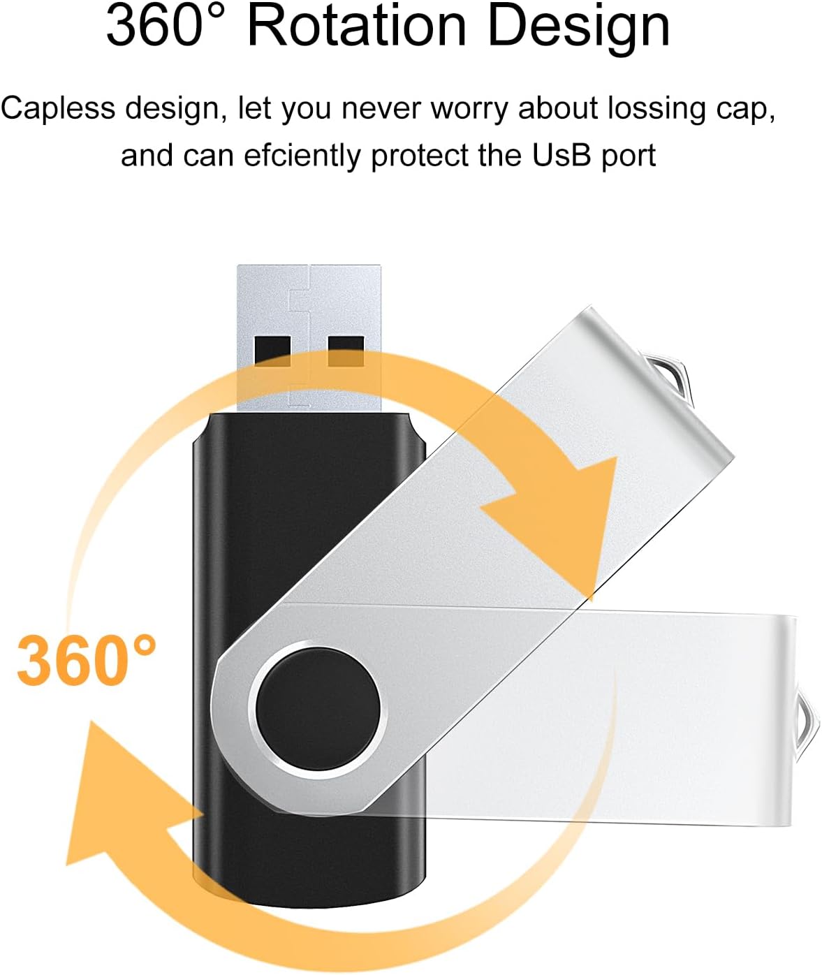 Rotating Design: 360° rotating metal clip protects the USB interface from damage when not in use. Unlike plastic material, this metal cover USB flash drive is more stylish and durable, and will not crack even after long-term use.
