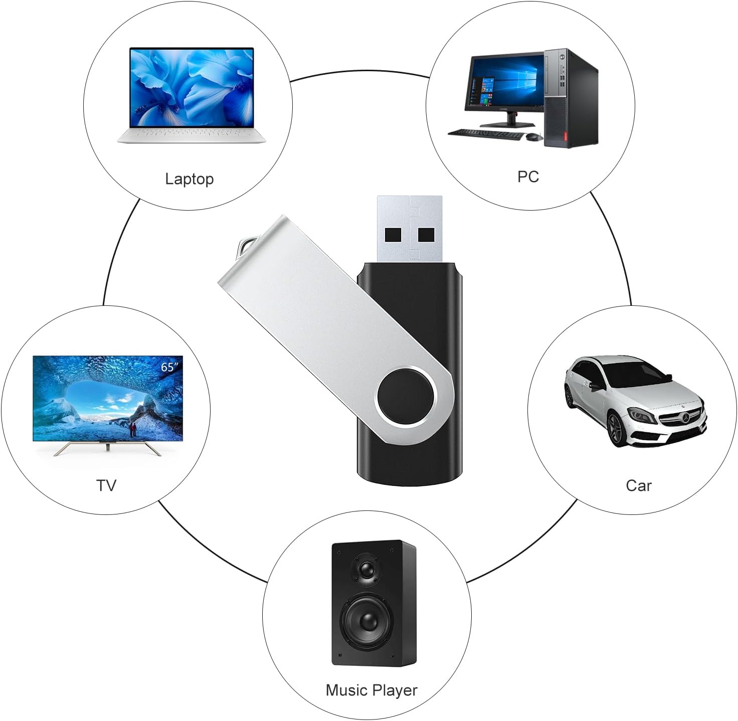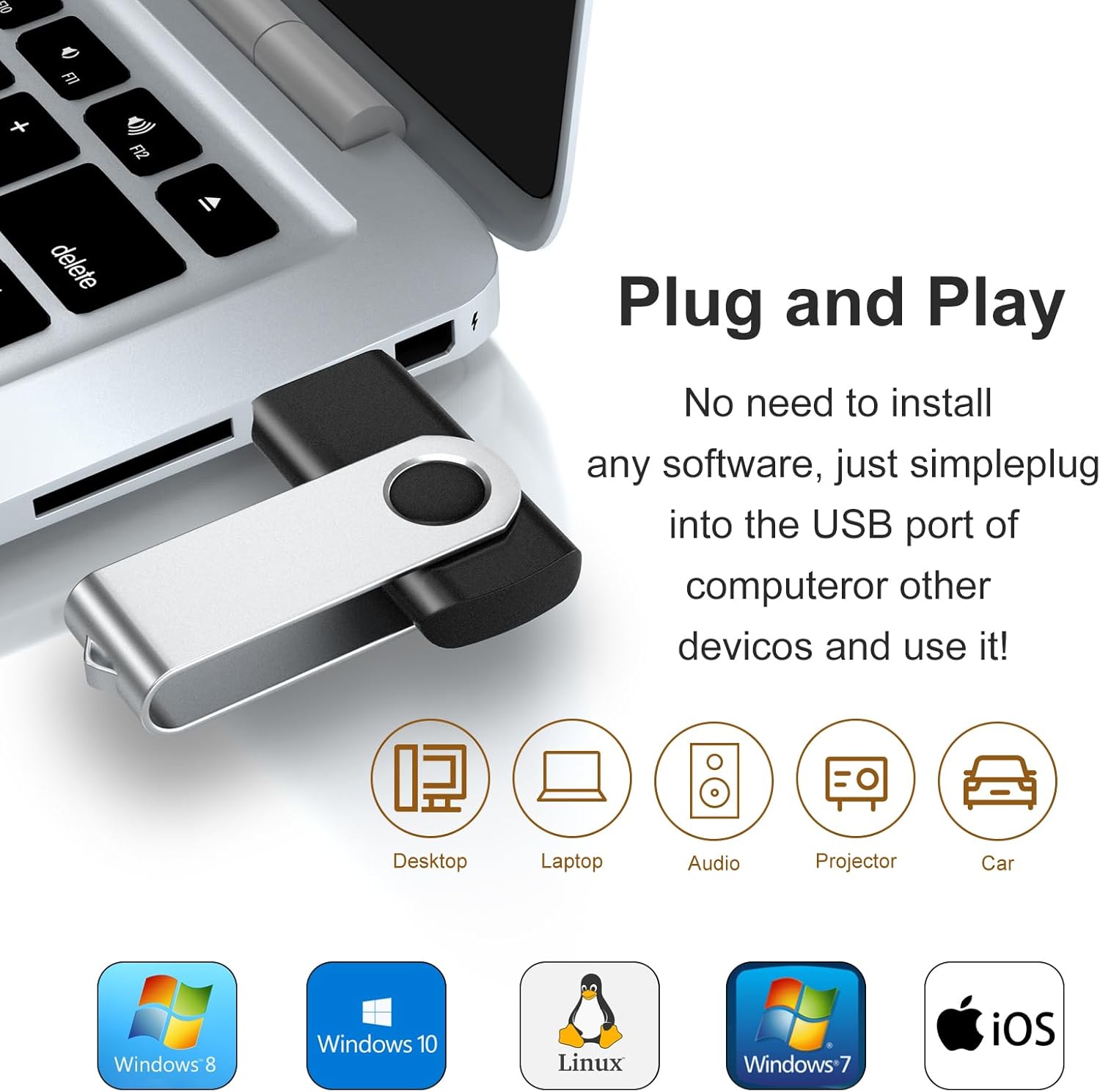 Plug and Play: No software installation required, the USB stick is easily recognized and works with most devices, such as: computers, laptops, car stereos, speakers, smart TVs, DVD players, printers, embroidery machines , etc.