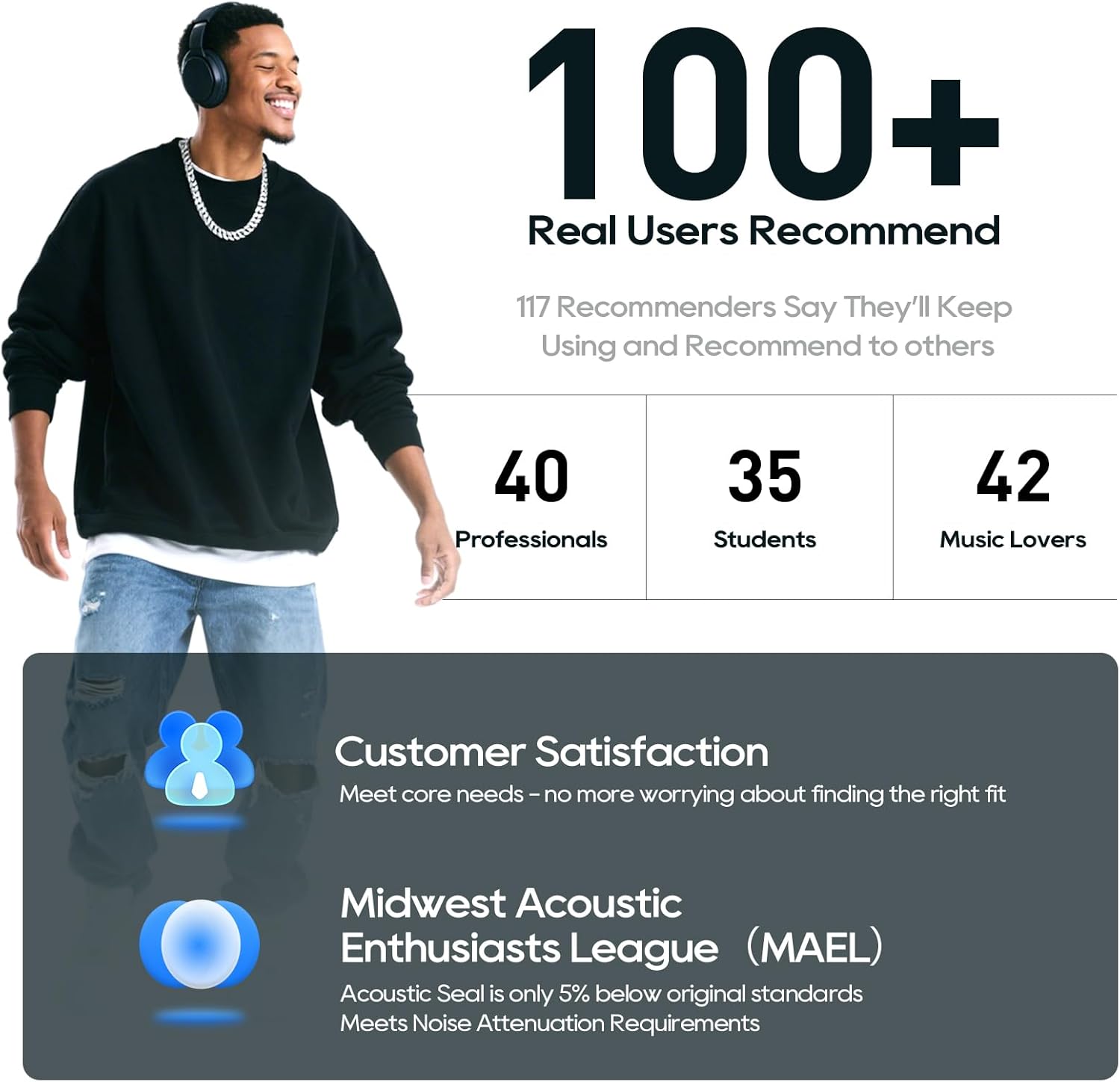 【Dominates 80,000 presses, lasts 45% more of “foam rebounds tested in a laboratory as the first day after a heavy use. Reinforced with two seams to resist daily wear. Less replacements, more years with your favorite headphones.